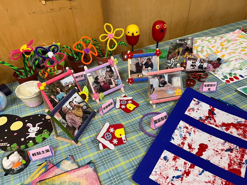 教學組的義賣攤位也是一大亮點。那些手工藝品—馬賽克拼貼、輕黏土作品,以及蝶谷巴特袋子,無不訴說著孩子們的創造力與耐心。小盆栽的綠意盎然,像是在呼應他們生命中的希望與堅韌。闖關遊戲區裡,孩子們的活力洋溢。無論是挑戰關卡的過程,還是完成任務後的喜悅,他們的眼神中充滿了自信與滿足。這種純粹的快樂,讓參與的每個人都感受到愛的連結與生命的美好。