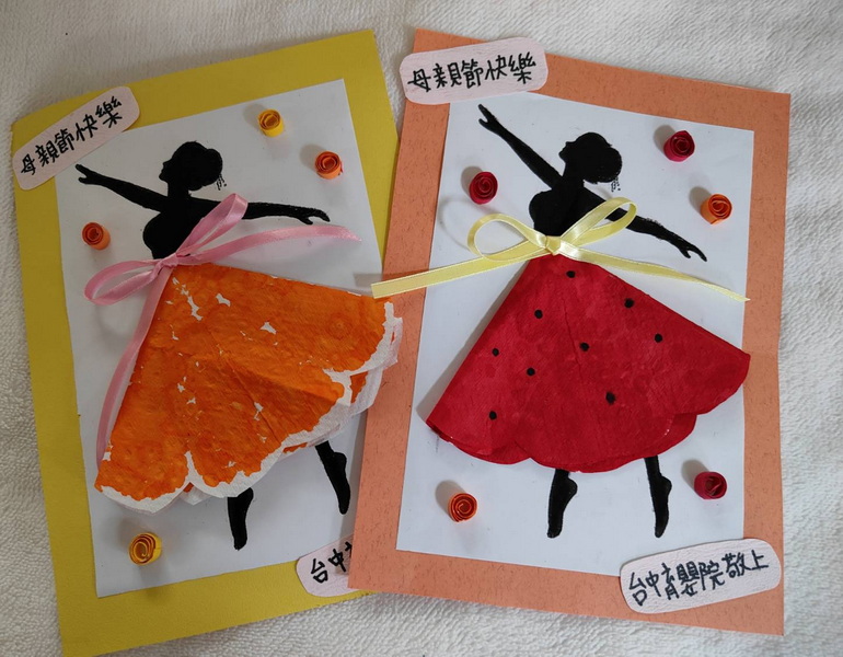 有的孩子將碎紙片或簡單的圖案黏貼在卡片上,加上圖畫,製成獨一無二的母親節賀卡,在母親節時孩子們開心地將卡片和自製康乃馨花束送給「媽媽們」,看到孩子們的笑容,滿滿的感動!