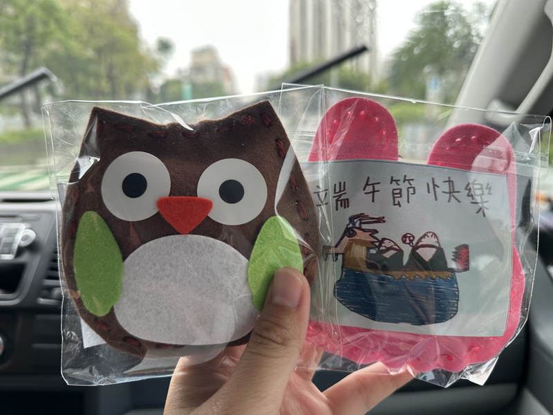 於是,我們採收了艾草,將艾草曬乾,並連絡了社區照顧關懷據點的工作人員,由老師準備了手作香包的材料包,讓大家一起動手縫製香包,香包內加入我們自種的艾草,再親筆寫上祝福的小卡片。