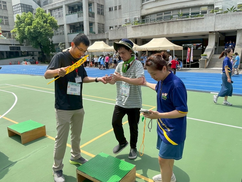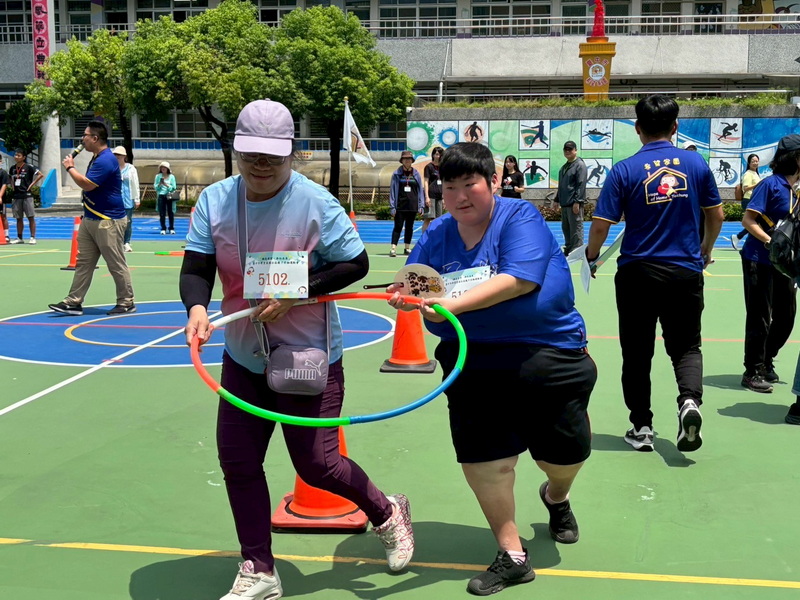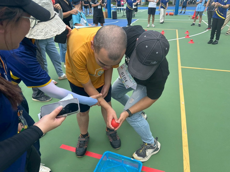 天使們與支持者們攜手上場,挑戰登階板、九宮格投擲、角盤移動與籃球投籃。這場比賽,不是速度的比拼,而是一次「陪伴」的真諦:有人牽著手,有人給予鼓勵,默契與信任編織成最美的風景。