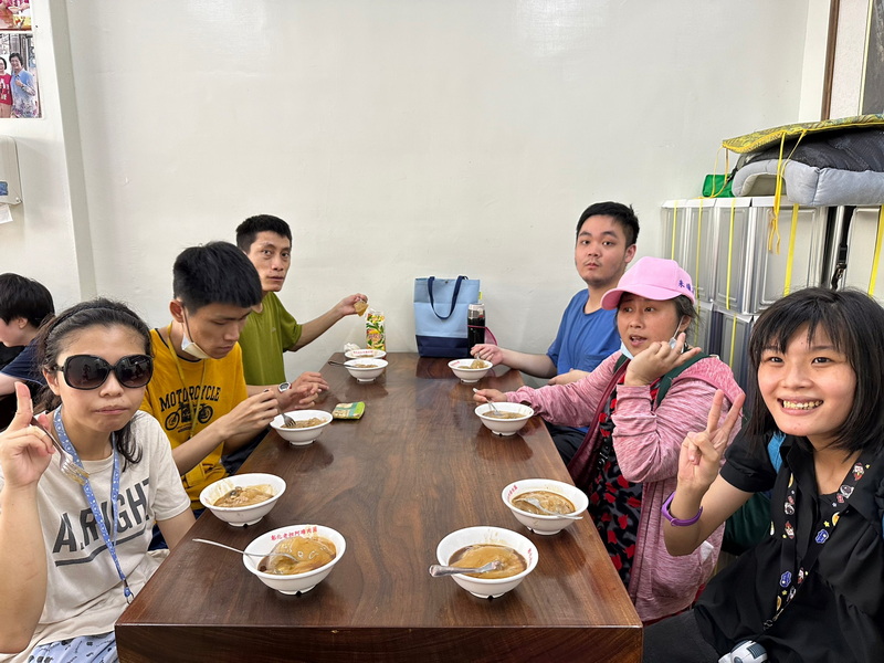 今天分配4位青年擔任小天使工作,小諭在陌生環境雖然有用白手杖但還是需要有○信在旁邊支持才比較放心;小亭偶爾會爆衝,所以小逸一路上都跟她手勾手感情很好;患自閉的小方有時總是狀況外,所以還是請小涵幫忙雙眼盯著;貼心的小蓉一路緊跟懷孕的教保員小漪提供隨時的幫助。今天的小天使都做得很棒,讓教保員放心不少!還有讓人驚豔的是小偉,原本小偉下午常常不想參加活動,只想靜靜坐著抄書,結果今天一路都像是隊長走路有風,精神抖擻,回程路上大夥開始討論下次自立旅遊地點了!