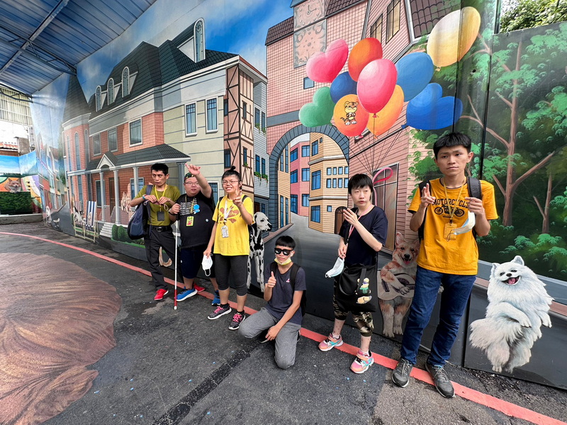 首站是忠權(忠犬)3D彩繪社區,顧名思義就是以狗狗為主題的彩繪區,大家跟著做出狗狗汪汪叫可愛模樣一起拍照,小任還幫狗狗戴起口罩一起拍照,接著前往期待已久的阿璋肉圓享受美食,一邊吹著冷氣一邊吃肉圓真是享受!大家似乎覺得出來玩就應該要喝一杯手搖飲.可是這附近並沒有飲料店.幸好小允對火車站很熟悉,自告奮勇要帶領大家前往茶○會,熱熱的天氣喝到愛喝的飲料超級滿足的(今天的餐費都是用平常工作的獎勵金購買,吃喝起來特別開心)!