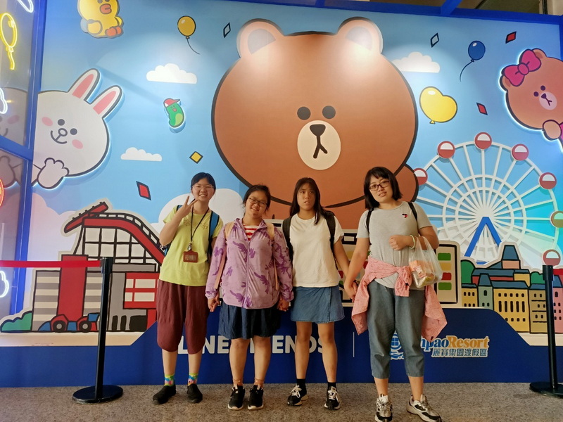 向晴家規劃去麗寶樂園,住民一大早就先搭捷運前往高鐵站去等接駁專車,抵達後在探索世界大門前先來個大合照,10月份的週二人潮不多,有很多遊樂設施可以選擇,但是女孩們發現好多設施太刺激了,不敢下去玩,還是選擇溫和一點的陽光探戈和碰碰車吧,麗寶樂園的吉祥物POPA也來跟我們一起合照喔!阿芬和和阿心留下不少開心合照,阿心覺得只要和大家在一起吃喝散步的旅程就超級無敵好玩了,還提議下次要去小叮噹科學園區旅遊。