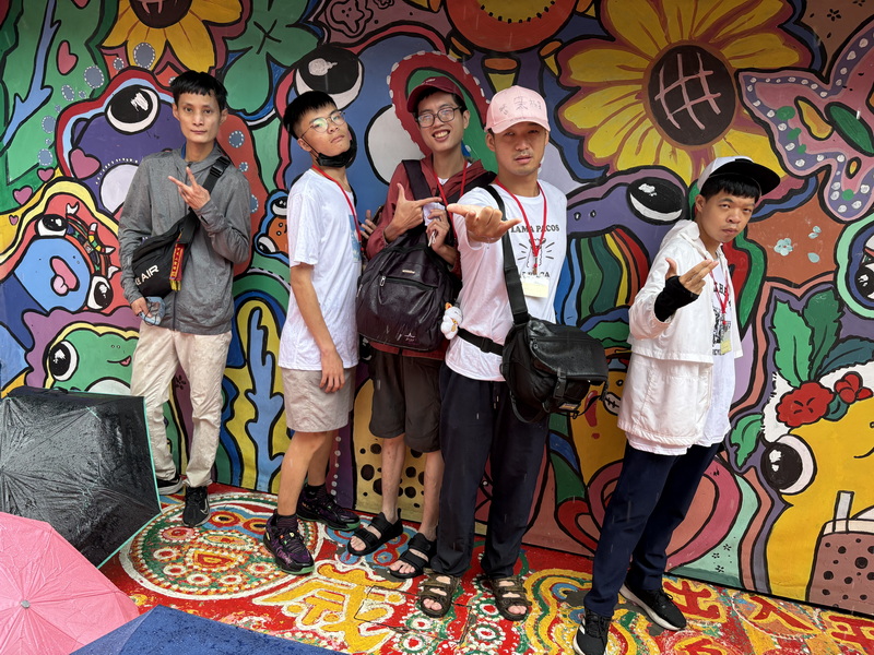 彩虹眷村的彩繪圖樣十分亮眼,沿路欣賞彩虹爺爺的作品,覺得十分驚豔,雖然大雨滂沱,依舊沒有澆熄住民的熱情,努力擺出最帥氣的姿勢,留下最美好的紀念。