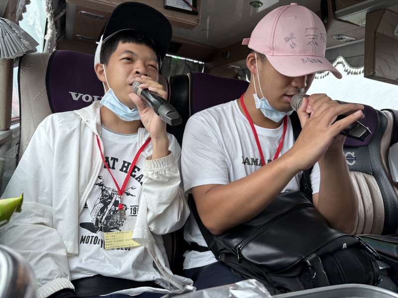 以往辦理家庭旅遊活動,大多是以家為單位,支持住民搭乘大眾交通工具為主,但今年的家庭旅遊,我們是兩間家園加上向心力工坊合辦,因參與人數眾多,故有機會體驗搭乘遊覽車,重回兒時學校旅遊回憶,在遊覽車上能觀賞影集、高聲歡唱,並搭配喜愛的零食,達到身心靈極大的滿足。