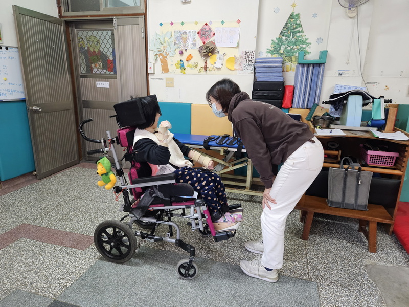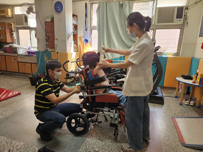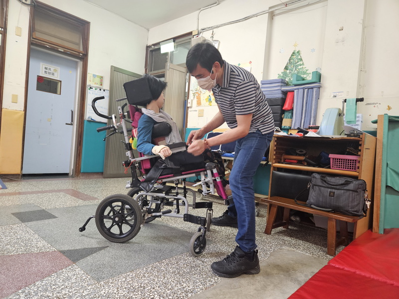 除了復健組定期的檢修與保養外,教保老師在每日抱持與轉位過程中,也能第一時間觀察輔具的適用狀況。例如孩子是否長高、體型改變導致座寬過窄,或上身已超出椅背支撐範圍;同時也留意使用時的反應,包含不適表現、皮膚受壓產生壓痕,或情緒反應變得明顯等。