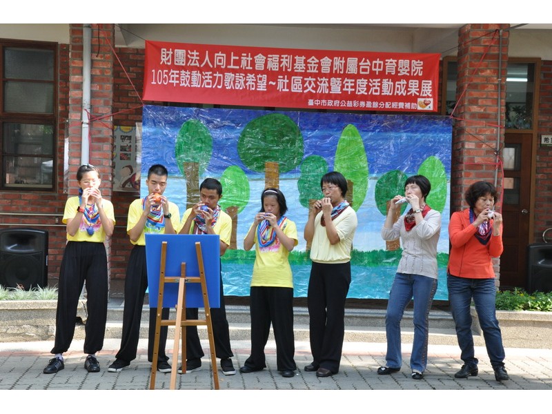 每年成果展都是展現育嬰院18般武藝的最佳舞台,為了讓更多服務對象上台感受當明星的成就感,太鼓隊為坐輪椅的孩子新增了氣勢磅礡的堂鼓,熱鬧開場。陶笛隊人少質精,悠揚笛聲悅人耳目。合唱團新學許多曲目讓大家聽得太陶醉差點忘了要喊「安可」,還好莊老師感受到孩子們的企盼,主動報幕加演讓孩子唱得過癮。今年也推出嶄新節目讓孩子們演出「12生肖的故事」,並讓學打擊樂的孩子擔任小樂隊配樂,精心設計的舞台裝扮無比吸睛!孩子們快樂、自然且流暢地演出,讓來賓們頻呼實在是太可愛了!沒想到彩排時忘詞傻笑、搶台詞、亂入的情況都沒發生,一鏡到底的完美表現讓老師們也歡呼、感動地快哭了。別小看每人只有少少幾句台詞,卻是每個夜晚不斷演練地精華演出呢!