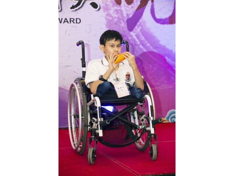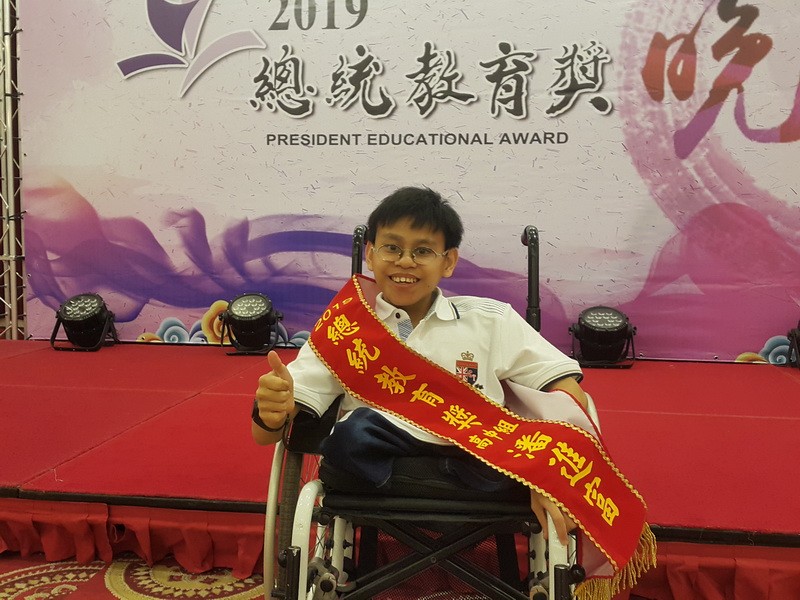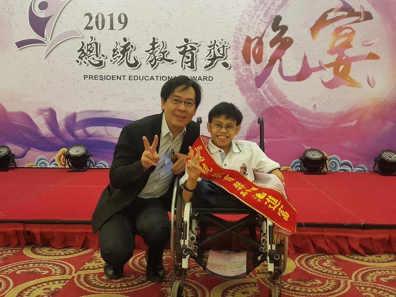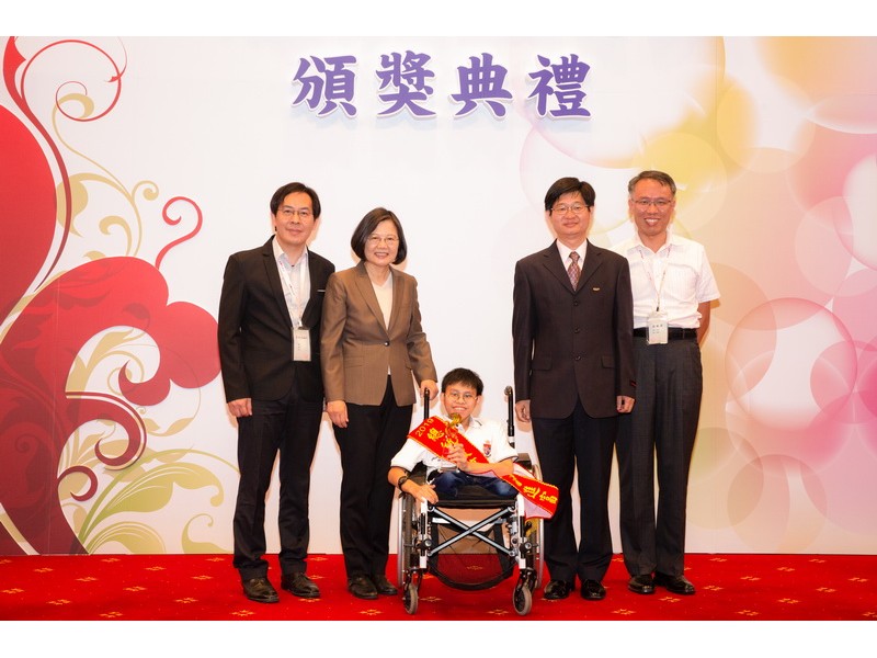 接著,進入頒獎典禮的重頭戲,從未造訪過台北總統府的阿富,滿是好奇的東看西瞧,隨著引導人員指示入座後,典禮就此展開,依國小、國中、高中職、大專之順序進行頒獎,當主持人介紹起阿富獲獎原因及優良事蹟時,阿富立刻站上舞台,蔡總統頒發一座獎座及獎學金以茲鼓勵,並和阿富合影,典禮結束後還有精彩晚會,阿富被賦予重責,上台演奏拿手的陶笛,看著阿富那小小的身軀,卻能吹出優美動聽的曲目,在台上的阿富,散發出自信魅力,看著這位風度翩翩的少年,彷彿忘了他是一個有障礙的孩子,帶給大家無限歡樂。