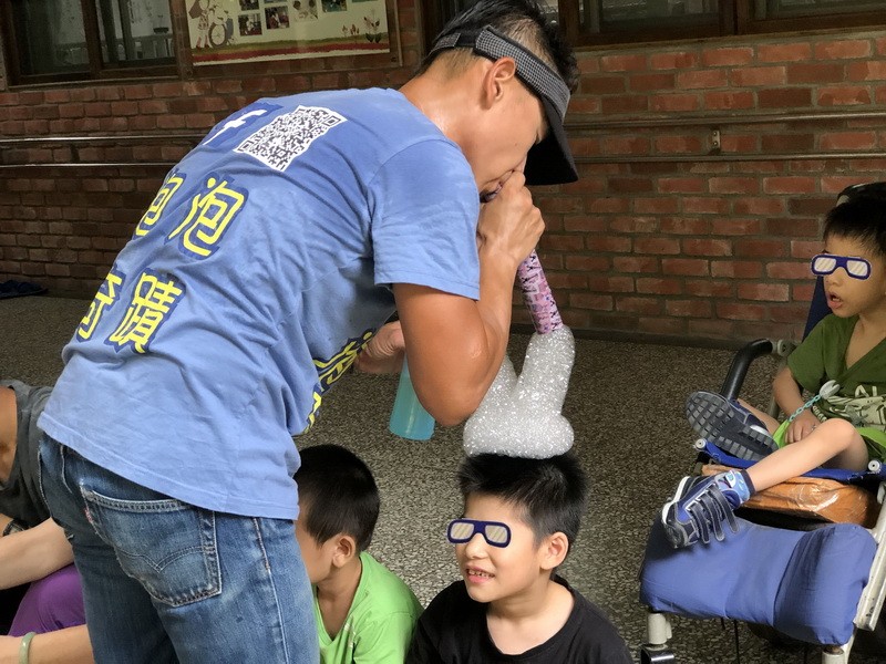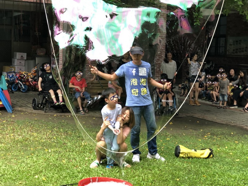 看泡泡先生玩總是不過癮,換孩子們自己玩,親身體驗的成果是