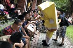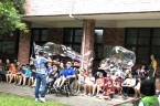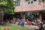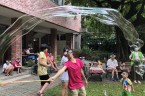 108.8.2風和日麗,有微風陽光不是非常強烈,正是玩泡泡的好時光,一早大家齊聚操場,等待泡泡先生準備好各種用具和材料。