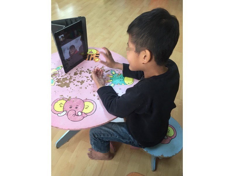 在遵守防疫規定的原則下,院方為了彌補這段期間親情連結的空白,我們協助孩子與家人進行視訊,一開始孩子並不能理解一張IPAD放在眼前到底有何用途,後來看到家人的影像及聲音,都笑的好開心!有口語能力的孩子會家人分享生活趣事,沒有口語表達的孩子則是靜靜地對家人微笑,由照顧者或是社工分享近況,讓家屬更為放心!有些家長年紀較長,從來沒有視訊過,把第一次視訊的經驗獻給了在機構中的孩子,從旁看到彼此間的互動,也人讓倍感溫暖!