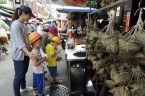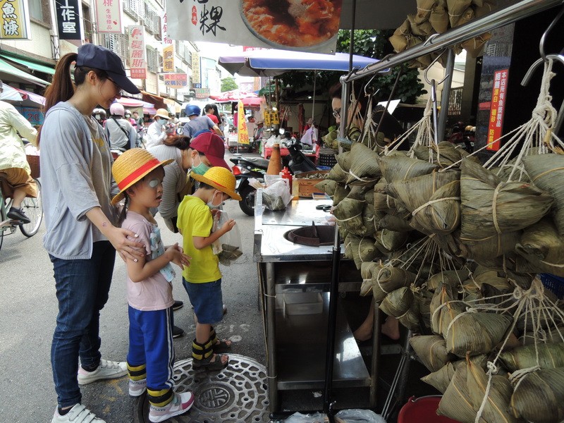 老師先介紹端午節的由來與活動,吃粽子是為了怕魚兒吃掉投江的屈原,而賽龍舟的習俗,則是從尋找屈原那時的划船,演變成如今熱鬧的龍舟競賽啊!再帶著大家到市場,認識各種不同味道的粽子和應景商品,大家看到一串串掛在架子上的粽子,都興奮不已;品嘗粽子時,都小心翼翼撥開粽葉,馬上被那熱騰騰的粽子和濃濃的糯米和肉香所吸引,吃著充滿了幸福感。