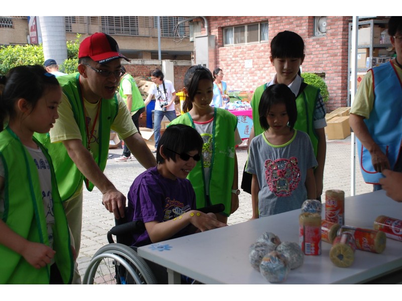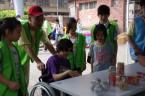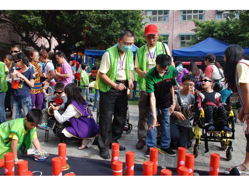 當天服務對象帶著親友觀賞作品展和影片、服務看板照片、手工藝,自行介紹在院生活的點滴,促進相互的了解。看著服務對象解說時臉上開心自信的光彩,讓人欣慰。而在院內從事職業陶冶的孩子,更是擔任最佳代言人開心引領來賓參觀溫室、花園,熱忱招待民眾試喝現打果汁和香草茶。為了讓重度多重障礙乘坐輪椅的服務對象能夠體驗夜市的歡樂氣氛,逢甲春暉社志工特地仿造夜市的遊戲攤位(套圈圈、丟球、滾球),及商請雞蛋糕販售攤車實際發送雞蛋糕,讓服務對象們玩得不亦樂乎呢!