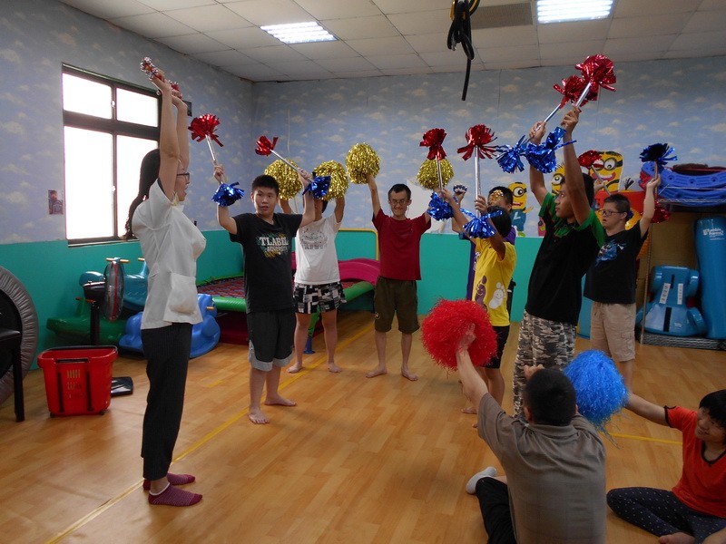 每天早上9點,孩子們陸陸續續下來中庭,由一群年輕可愛的老師帶領大家晨操以開啟一天的序幕,幾年下來孩子們已經能到前方帶領大家舞蹈動作了,此外,每周還有計畫性體能活動課程,以確保每一位服務對象都有充足的活動機會。
