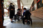 透過「腳踏式輪椅」這種特殊的訓練方式,讓復健運動變得更有趣,午後的中庭陽光灑落在大地上,四棵老榕樹與綠意的襯托下,孩子可以一邊運動一邊和社工老師或志工互動,生活化的復健增進孩子的社交能力也提升健康與品質。