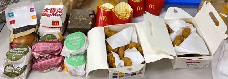 感謝逢甲大學招生事務處夥伴贊助育嬰院孩子們最愛的聖誕快樂餐,享用豐盛的麥當勞餐點,有薑燒豬肉長堡、雙層牛肉吉事堡、蕈菇安格斯黑牛堡、嫩煎鷄腿堡、大麥克、麥香鷄、薯條、麥脆鷄腿、麥克鷄塊……桌上琳瑯滿目的美食,看得大家都要流口水了,加上香噴噴的美味不時傳來,不禁讓人食指大動。逢甲大學夥伴也藉由電話來關心育嬰院的孩子們並給予聖誕祝福。