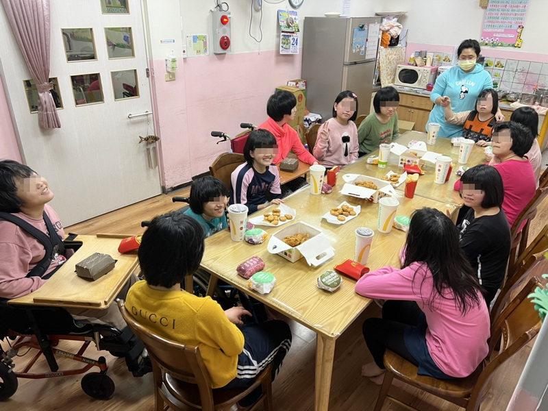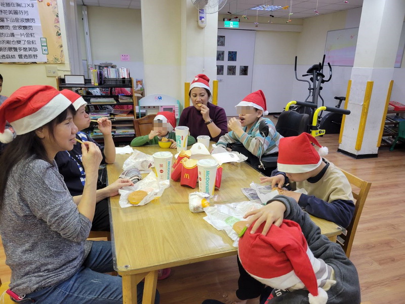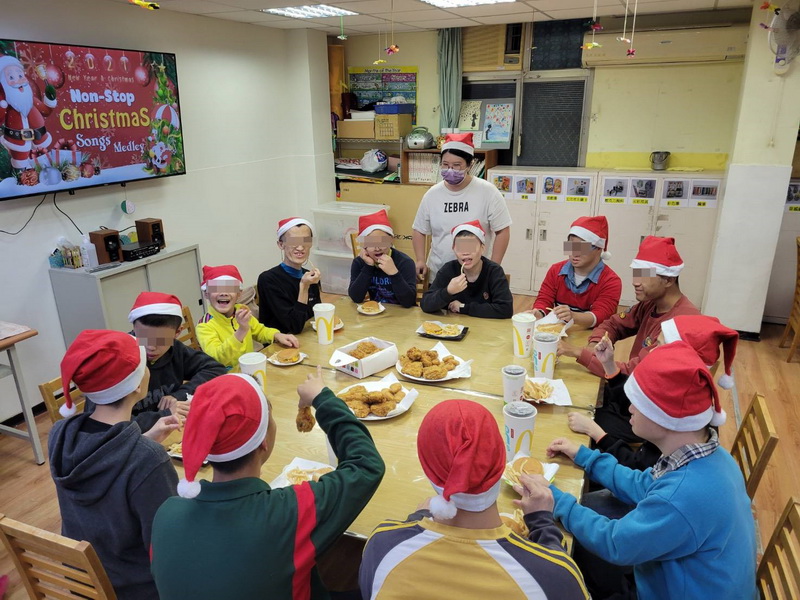育嬰院因防疫規定採分倉分流,所以孩子們都在各家享用歡樂聖誕餐,老師播放聖誕歌曲,大家一起唱聖誕快樂歌並給予彼此祝福,謝謝逢甲大學大哥哥及大姐姐提供豐盛的聖誕餐並祝福他們聖誕快樂、新年快樂。