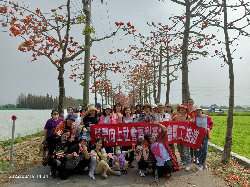 最後來到白河木棉花道,觀賞全長866.5公尺,715棵木棉樹盛開的美景,在藍天映照下,讓心情一片開朗,也結束今天快樂的旅程,在同仁們大展歌喉,歡笑開心的歌聲中回到工作崗位。