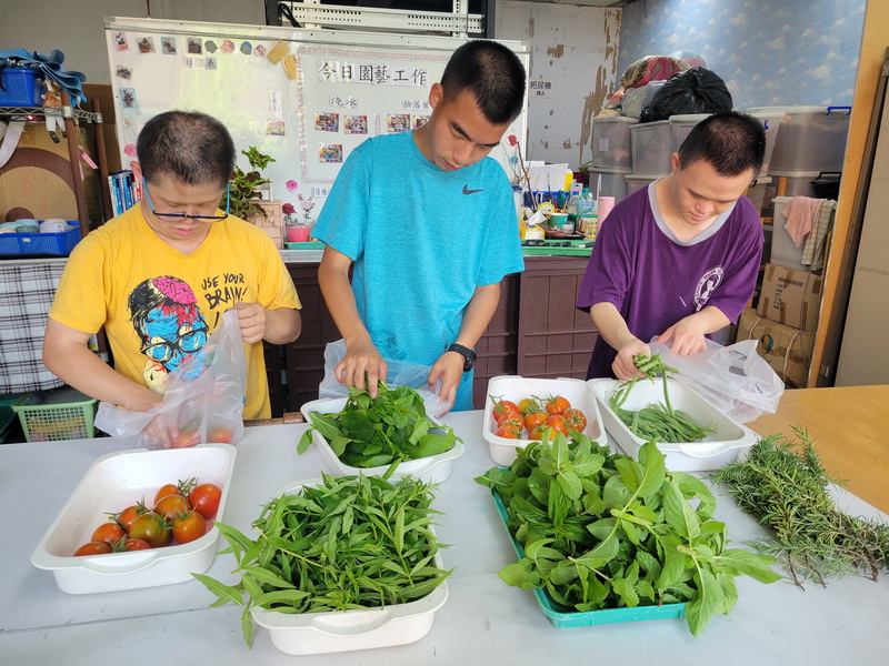 就在日復一日耐心地澆水、施肥、修剪與漫長的等待下,在今年的四月到五月間,植物終於由成長期邁入成熟期,於是我們一同進行採收、分別裝袋並販賣。