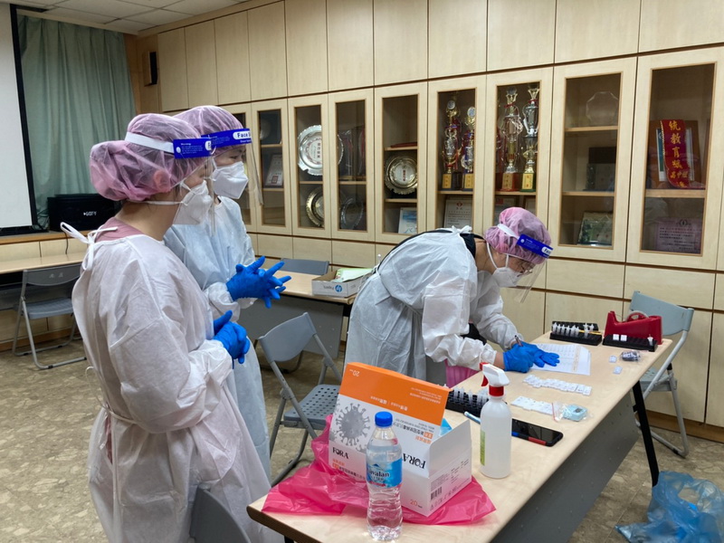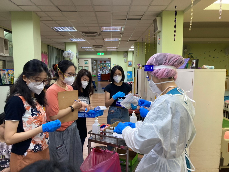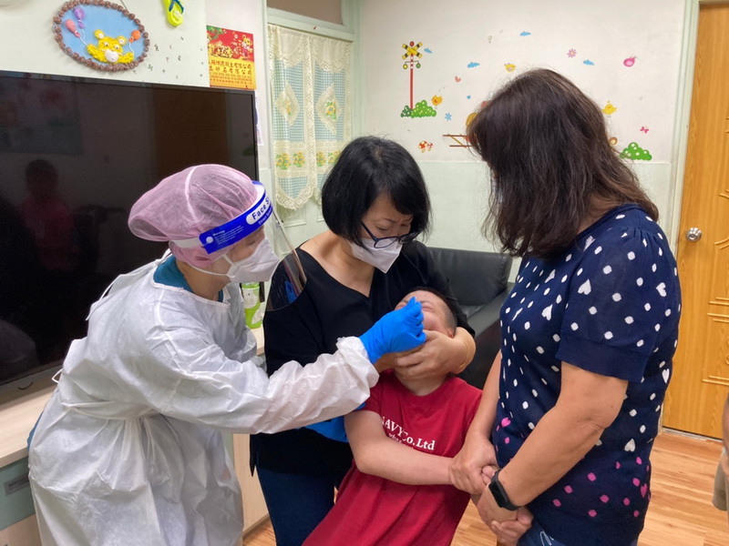 保健組在事前與醫療單位密切聯繫,將每個作業環節做縝密考量與規劃,快篩動線、人流分散、環境清消,還有因快篩不適孩子的情緒可以得到立即的安撫,感控環節缺一不可,在主管指示下各組密切配合與合作,降低每個可能的風險。各個單位工作人員各司其職,讓全面普篩業務井然有序進行也順利完成,當日普篩共112人,全採陰。
