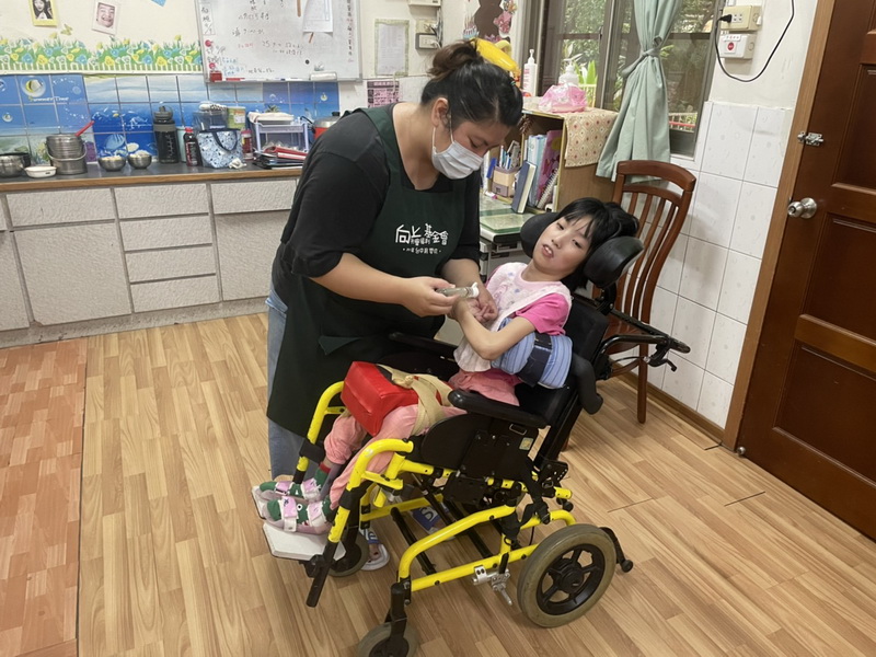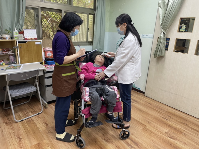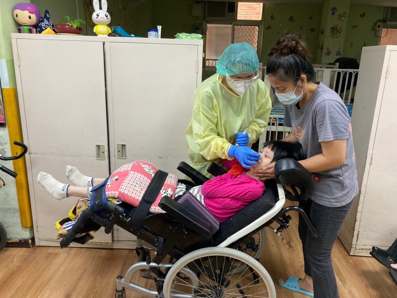 台中育嬰院全數為身障礙者孩子,其抵抗力較弱,防疫更是絲毫不能鬆懈,為了維護孩子們的健康,許多規範依然必須遵守,舉凡工作人員的健康自我管理、服務對象的健康管理更是每日的例行工作,必須確實做好健康監測與落實防疫各項措施;院內配合公部門執行住宿式機構定期公費快篩、也辦理團體衛教課程、持續安排COVID-19疫苗接種等措施,時時耳提面命提醒孩子與工作人員防疫沒有休息日,這是日常生活的一部分,需要時刻落實防疫規範。