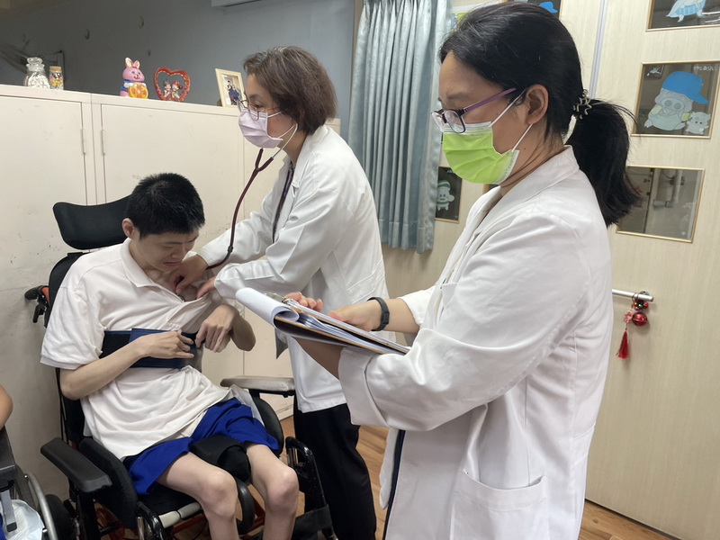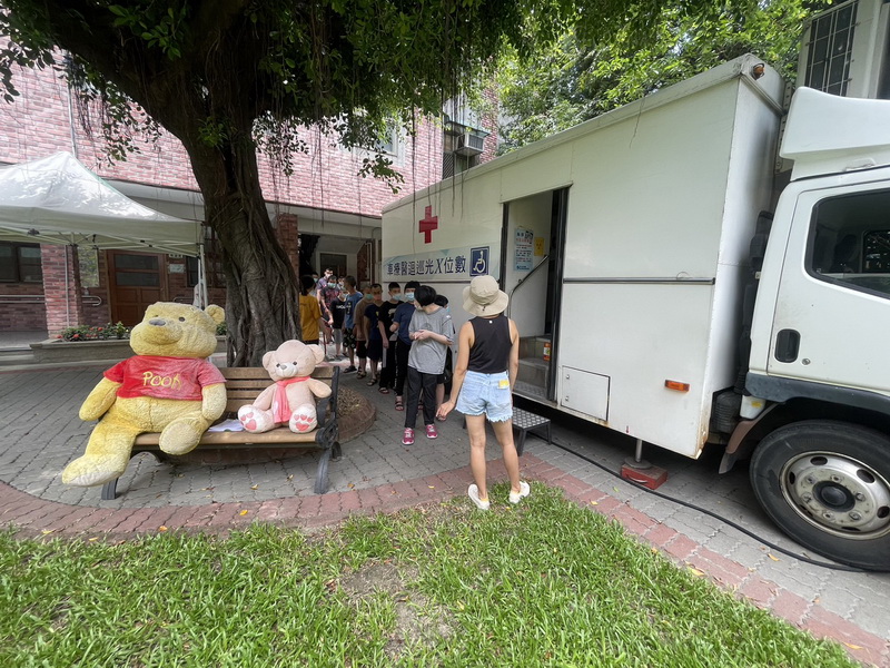 為了讓服務對象有好的受檢經驗,減少環境變動,理學檢查及抽血都在孩子們熟悉的情境中進行並有家庭媽媽們陪伴,而院內近半數皆是輪椅使用者,也特別安排升降型躺臥式X光巡迴車,在家庭媽媽們的陪伴下,可怕的小黑屋變成了有趣的攝影棚,順利完成所有服務對象的胸部X光檢查。