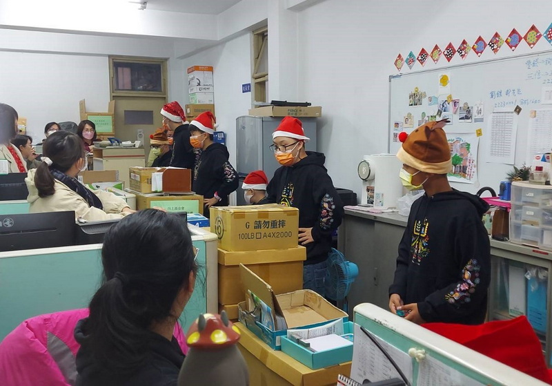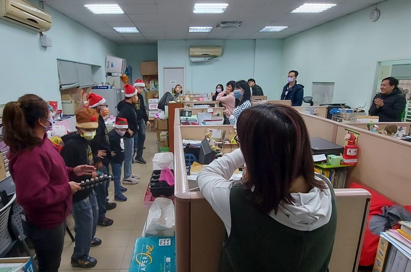 接著由院內報佳音活動揭開序幕,由小小報佳音團隊到辦公室內為大家帶來精彩的熱舞表演,分享小禮物與分享祝福。
