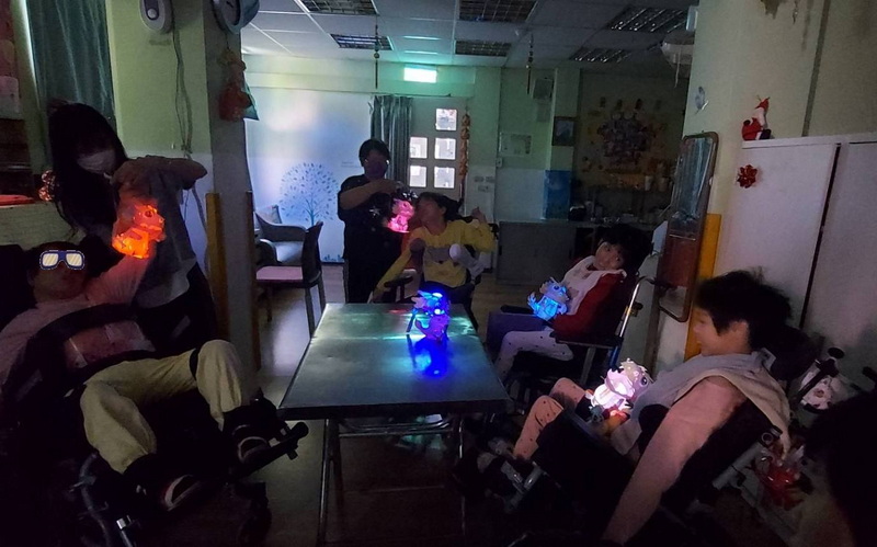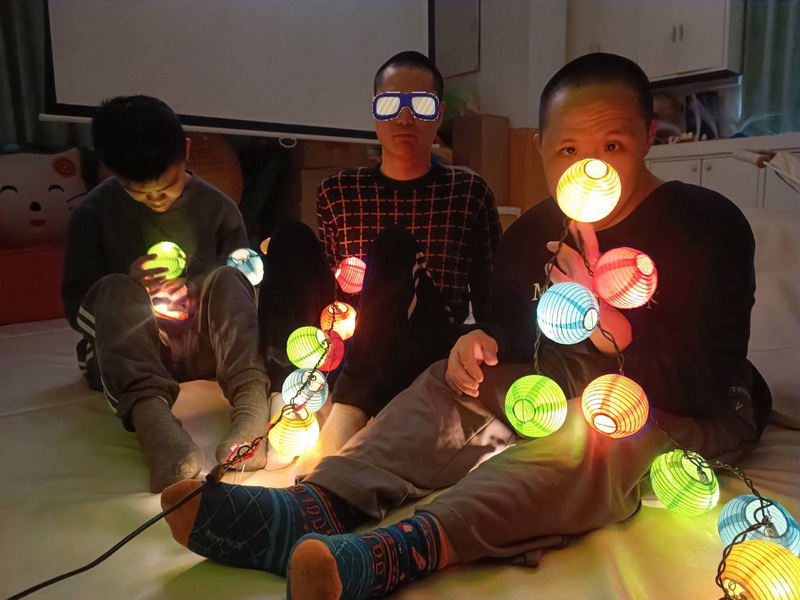 元宵節前有設計一連串的提燈活動,包含在感官教室陪著孩子一起欣賞光影變化,也帶著孩子DIY做紙燈籠,我們也一起提著燈籠踩街,讓孩子們感受街上節慶的氣氛。