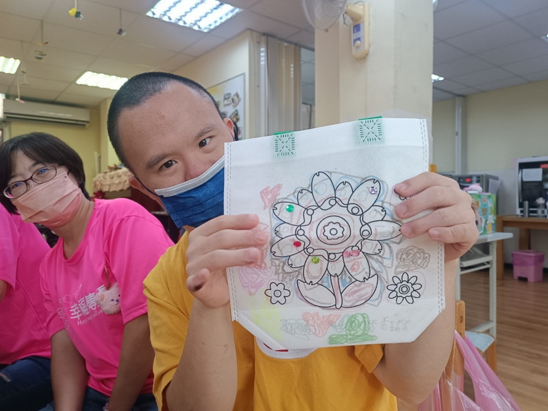 最後,大家一起彩繪環保手提袋,將原本素面的手提袋,彩繪為色彩豐富且具個人特色的作品,不僅美觀,還很實用,使用環保袋的過程中也能為「愛地球」盡一份小小的心意。