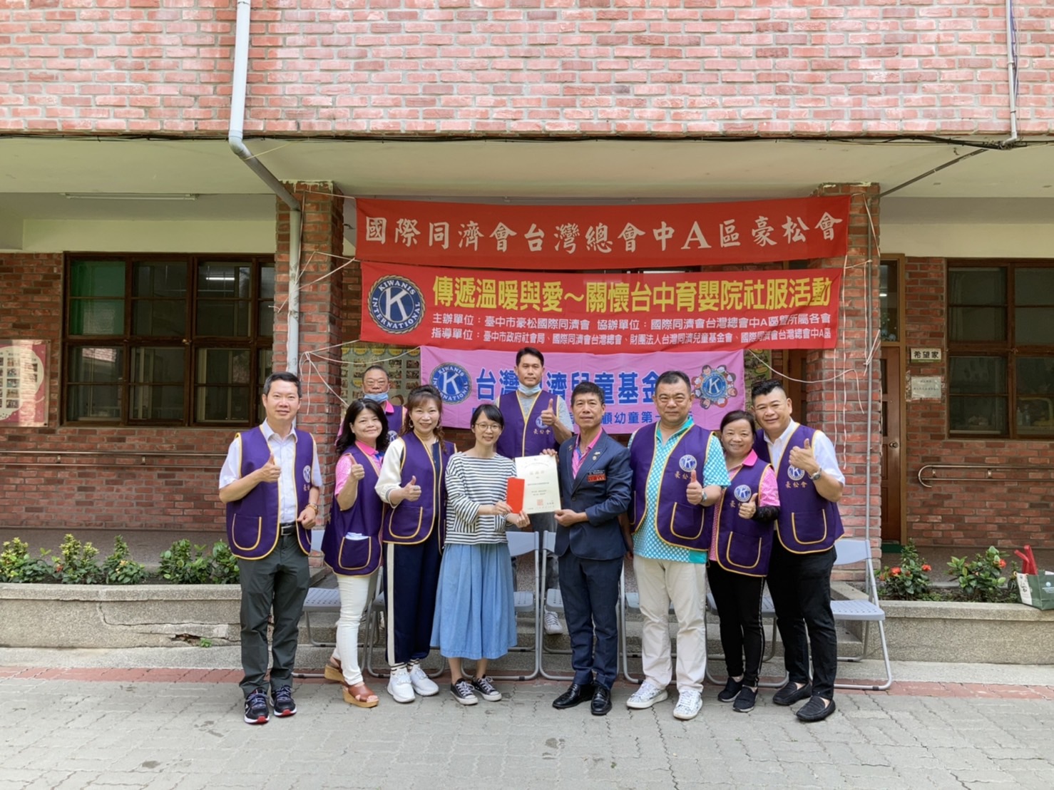感謝臺中市豪松國際同濟會莊東陽會長帶領會友到院辦理「傳遞溫暖與愛~關懷台中育嬰院社服活動」並捐款資助台中育嬰院持續深耕弱勢身心障礙者服務工作。