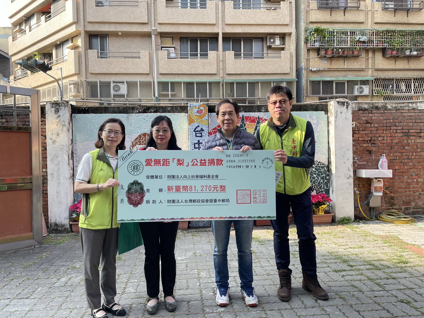 114.12.5臺中郵局與財團法人台灣郵政協會「愛無距梨」公益捐款
