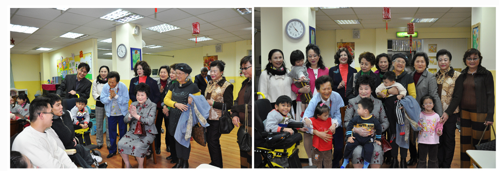 國際崇她台中社社長楊信美、前社長陳丁清霜與社友一行人,昨天到台中嬰院進行關懷,並參觀了解育嬰院院生、院童生活情形。社友們參觀希望家,了解極重症身心障礙孩子在育嬰院所受到的專業照護情形,並在活動教室與院生、院童互動。當孩子們看到來參訪的親切社友,紛紛一湧而上,爭相問候、要 求抱抱,逗得大家好開心。院生李成偉、洪掀仁並現場獻唱「感恩的心」,感謝社友們關懷。