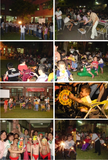 今年中秋月圓時分,許多志工的熱情參與及溫馨的付出,以及孩子們精心準備的完美表演,在在使這個佳節所存在的價值更具有意義。在小小的庭院內,真情四溢暖飄香…除了志工們帶來的直笛與小提琴的音樂饗宴充實孩子們的身心靈之外,真正節目的高潮是在重度障礙孩子們唱歌表演兩隻老虎、再來則是輕中度障礙的孩子們載歌載舞地表演親親寶貝,凝視著他們天真的舞動著歌唱著,夜空伴著繁星點點的月娘似乎都掛著那麼一抹微笑。