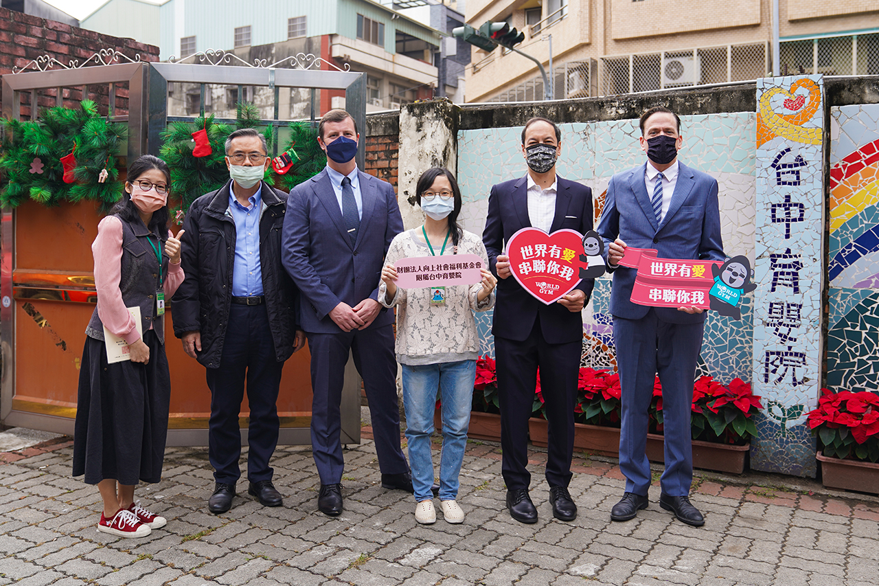 台中美國商會會長何道明及World Gym台灣區總裁柯約翰12/23實地走訪台中育嬰院,感謝台中美國商會及World Gym世界健身俱樂部長期挹注台中育嬰院復健資源。