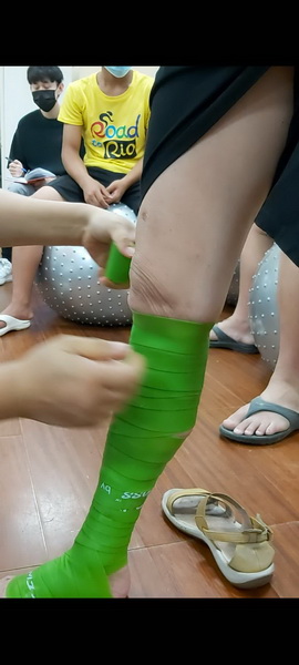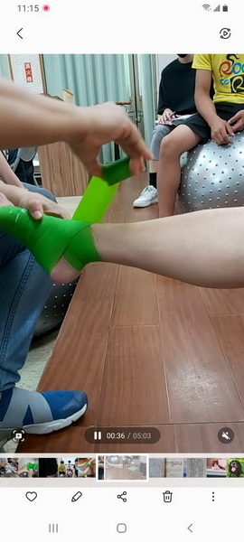 在課堂上老師用巫毒帶協助處理孩子不舒服的肢體如手或腳,及教孩子使用,課後孩子會主動來找我協助綁帶,綁帶過程可以和孩子閒話家常或身體感覺,綁帶後讓不舒服的肢體放鬆,也拉近彼此關係。