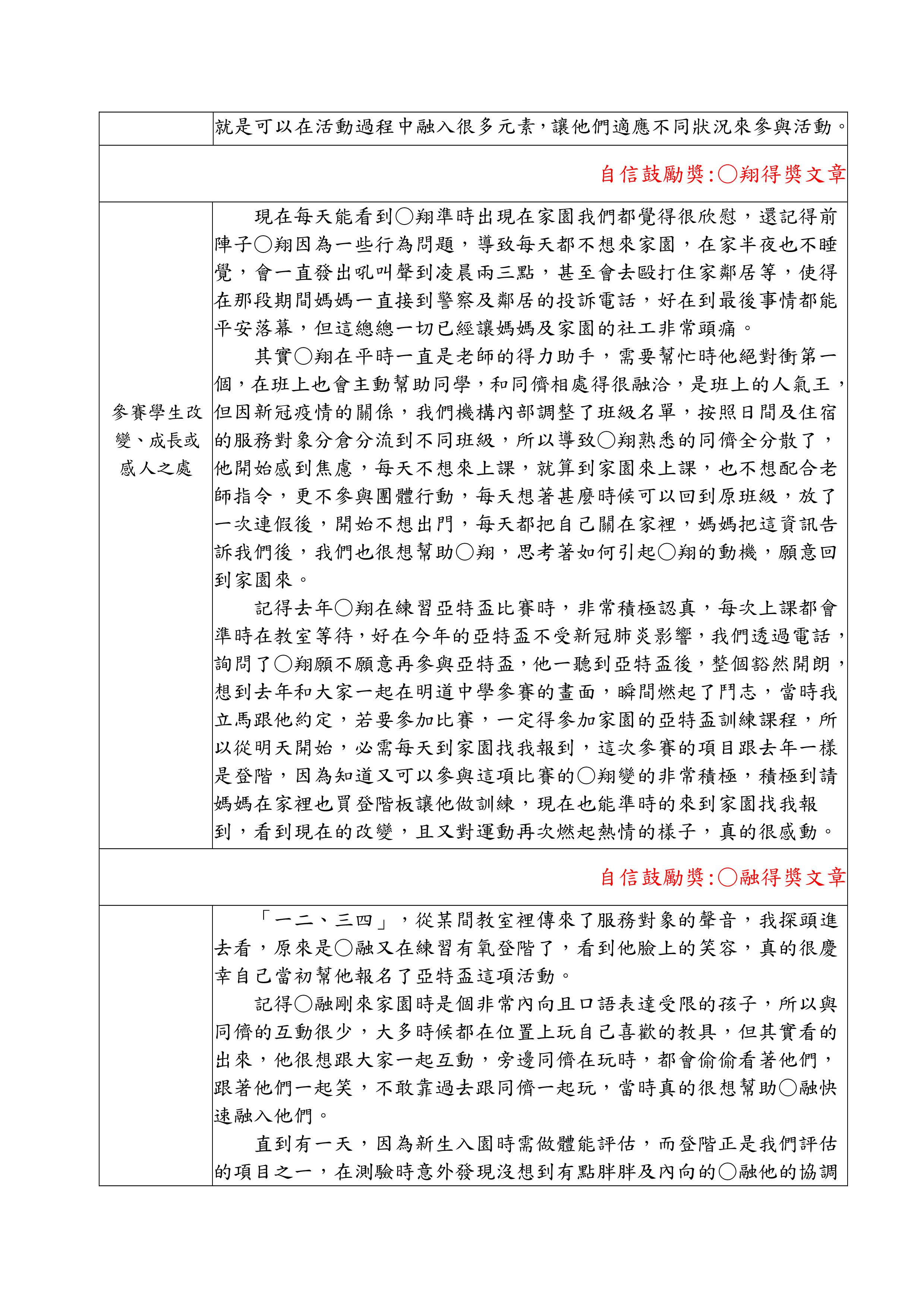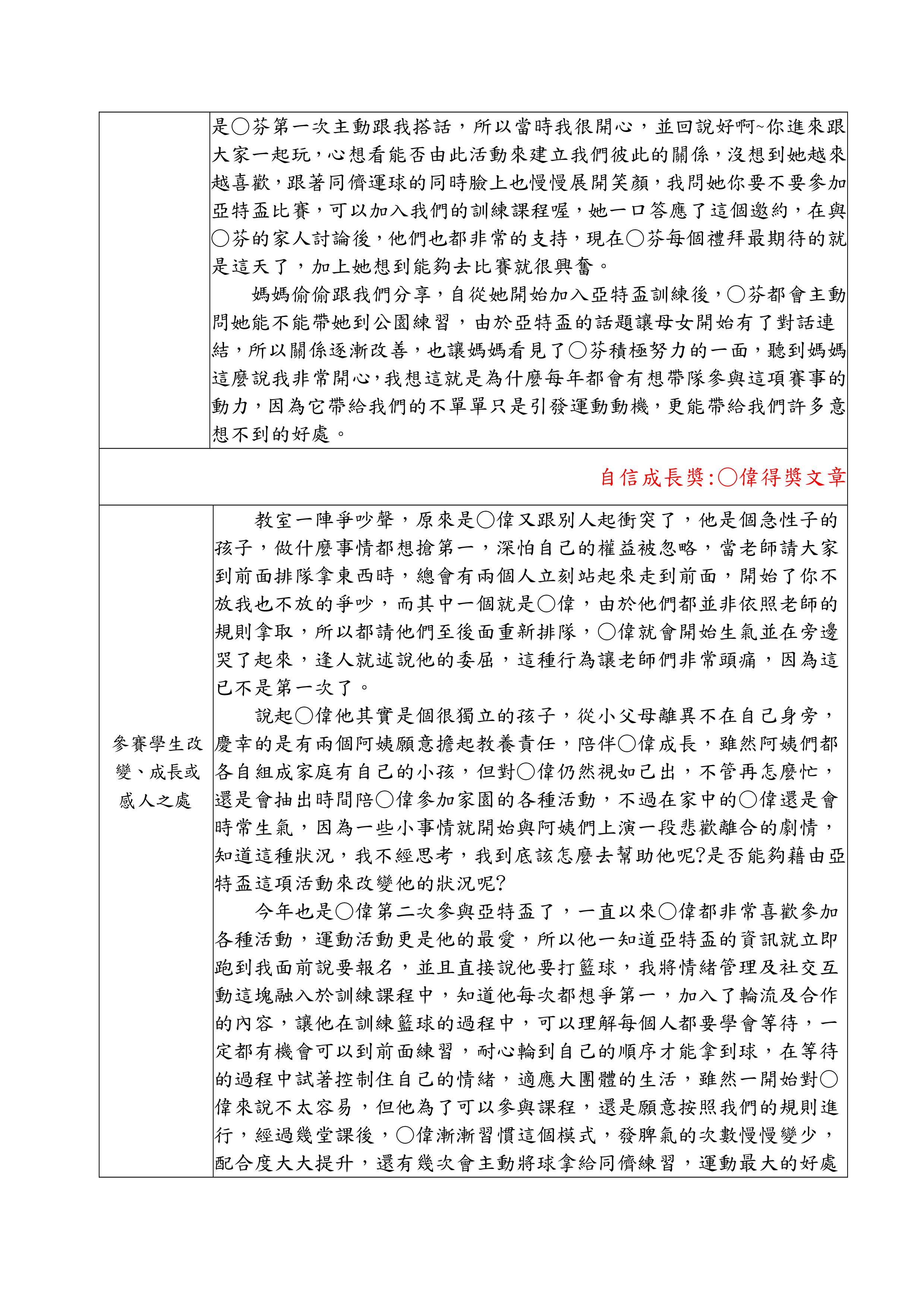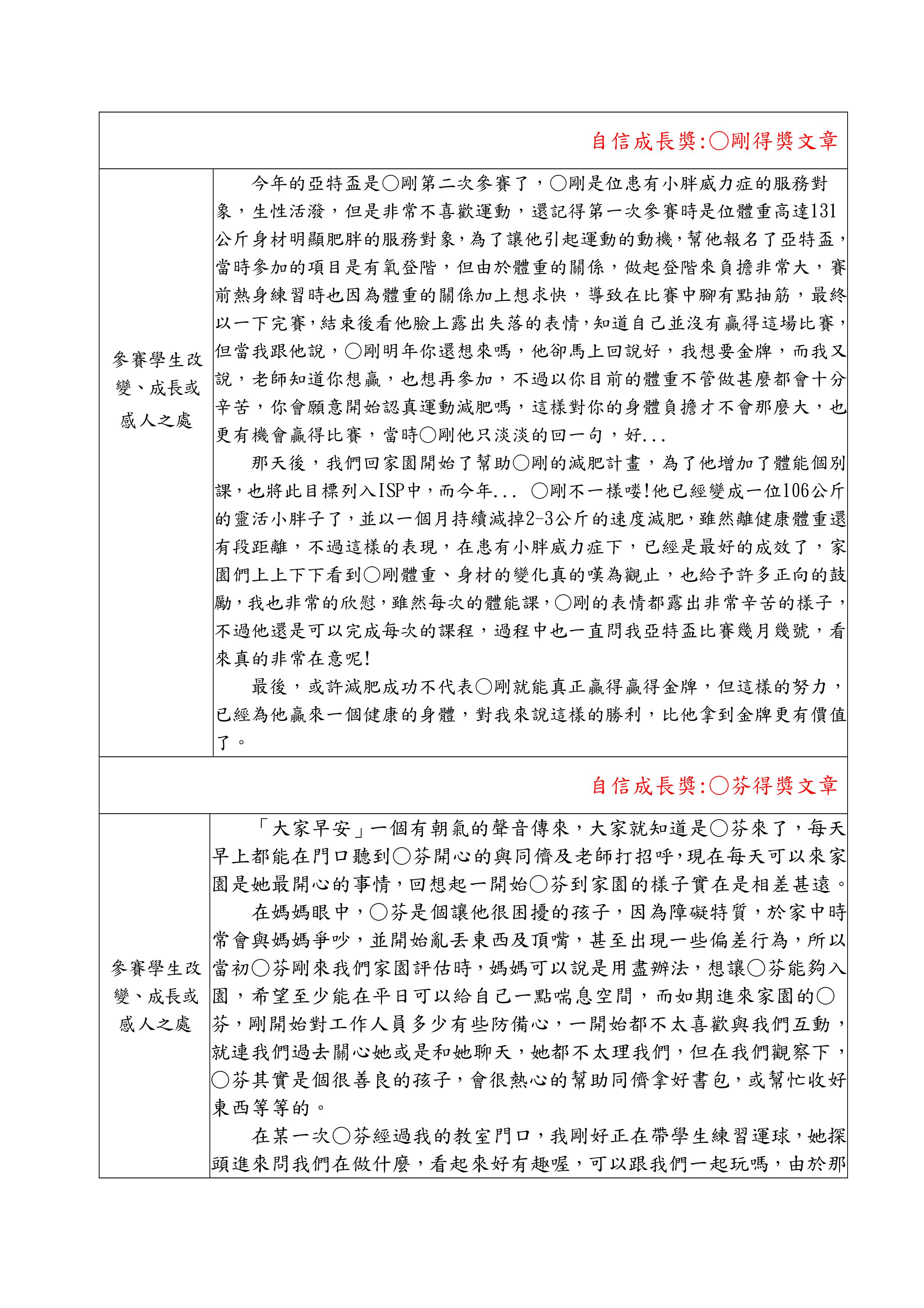 榮獲第九屆臺灣中南區【亞特盃】自信鼓勵獎兩名