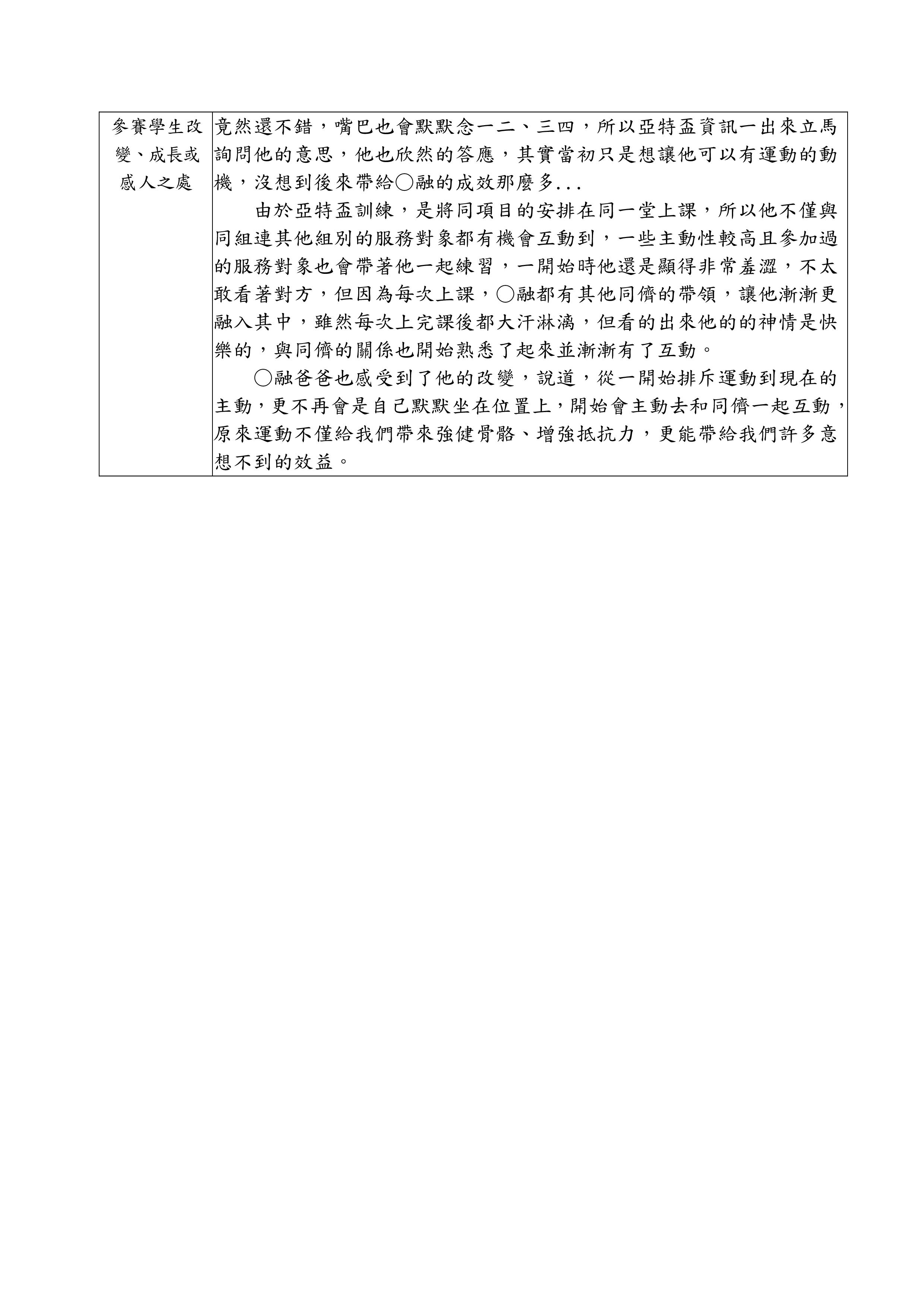 榮獲第十屆臺灣中南區【亞特盃】自信成長獎三名
