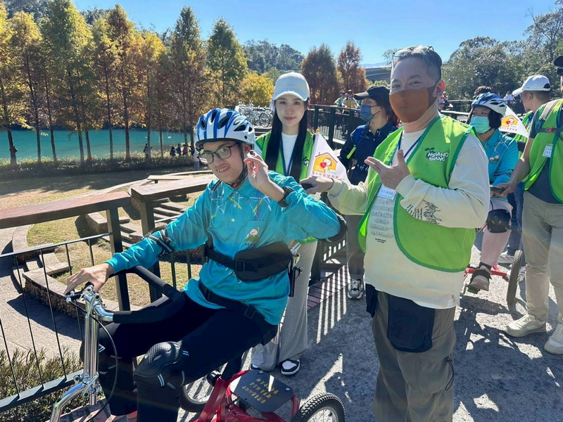 一路上,工作同仁及志工夥伴們全程陪伴在側。引導路線、補給支援,也不忘彎下身給予鼓勵:「慢慢來,你很棒。」「我在旁邊,放心騎。」夥伴們溫暖的加油聲,與腳踏車的轉動聲交織成最動聽的樂章。