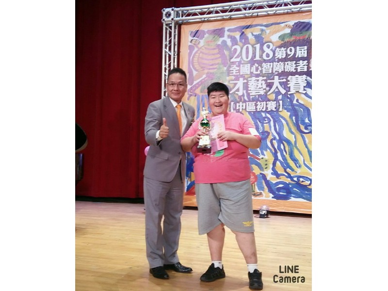 希望家園餐飲作業組的一位服務對象參與「2018年第9屆全國心智障礙者才華大賽-中區初賽的視覺藝術評選中立體造型-青少年組」榮獲特優!這位孩子得獎的作品名為「糖果滑梯」,是一個非常需要極精細動作完成的成品,孩子在教保員的支持下,在拿到由師傅切割而成的小木條,能夠使用砂紙磨鈍木條邊緣,再黏接整個主架構,並使用顏料上色完成。