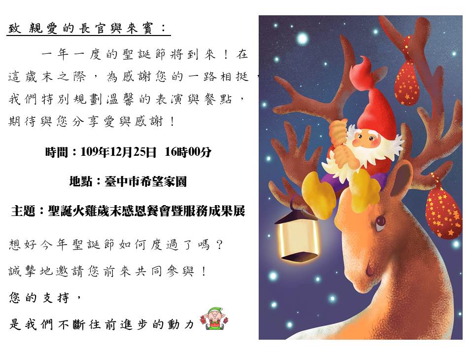 109.12.25日舉辦聖誕火雞歲末感恩餐會暨服務成果展