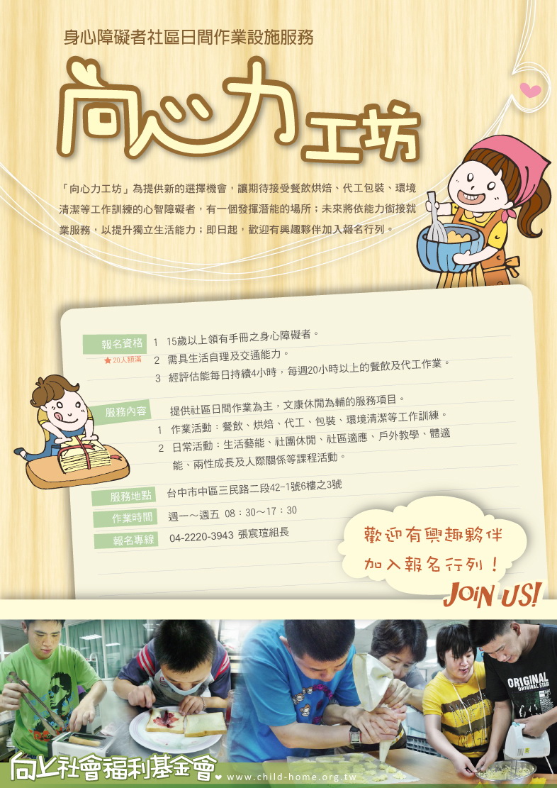本會開辦身心障礙者社區日間作業設施服務~「向心力工坊」~歡迎報名