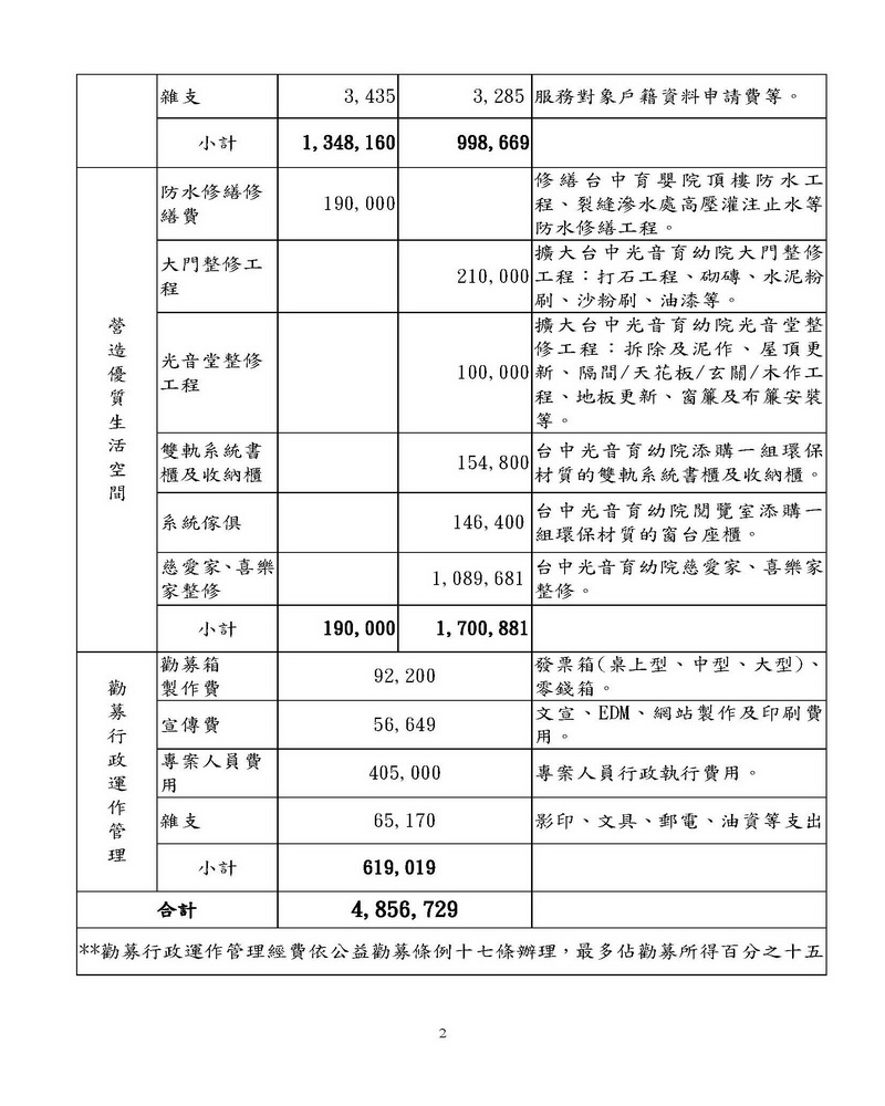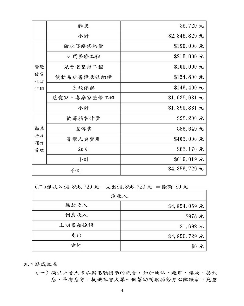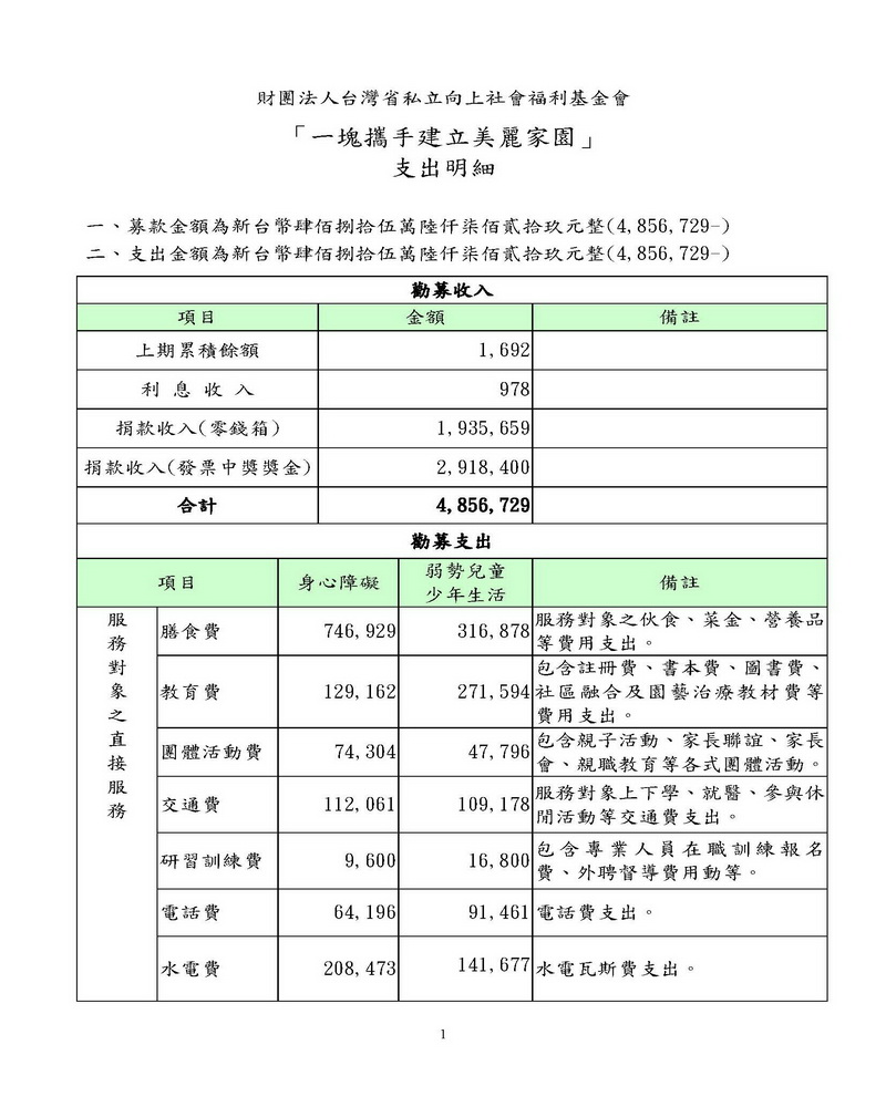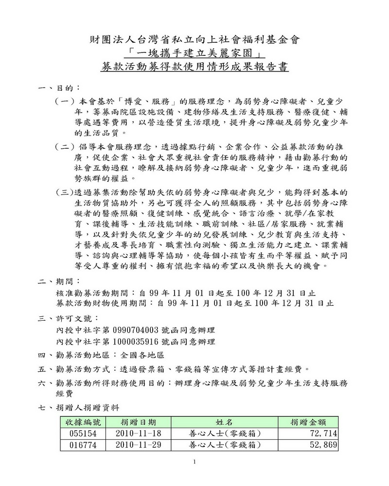 一塊攜手建立美麗家園"勸募活動成果報告(結案)