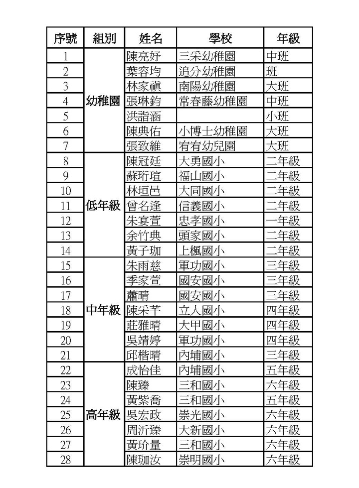 第六屆向上童畫賞彩繪比賽入圍名單。