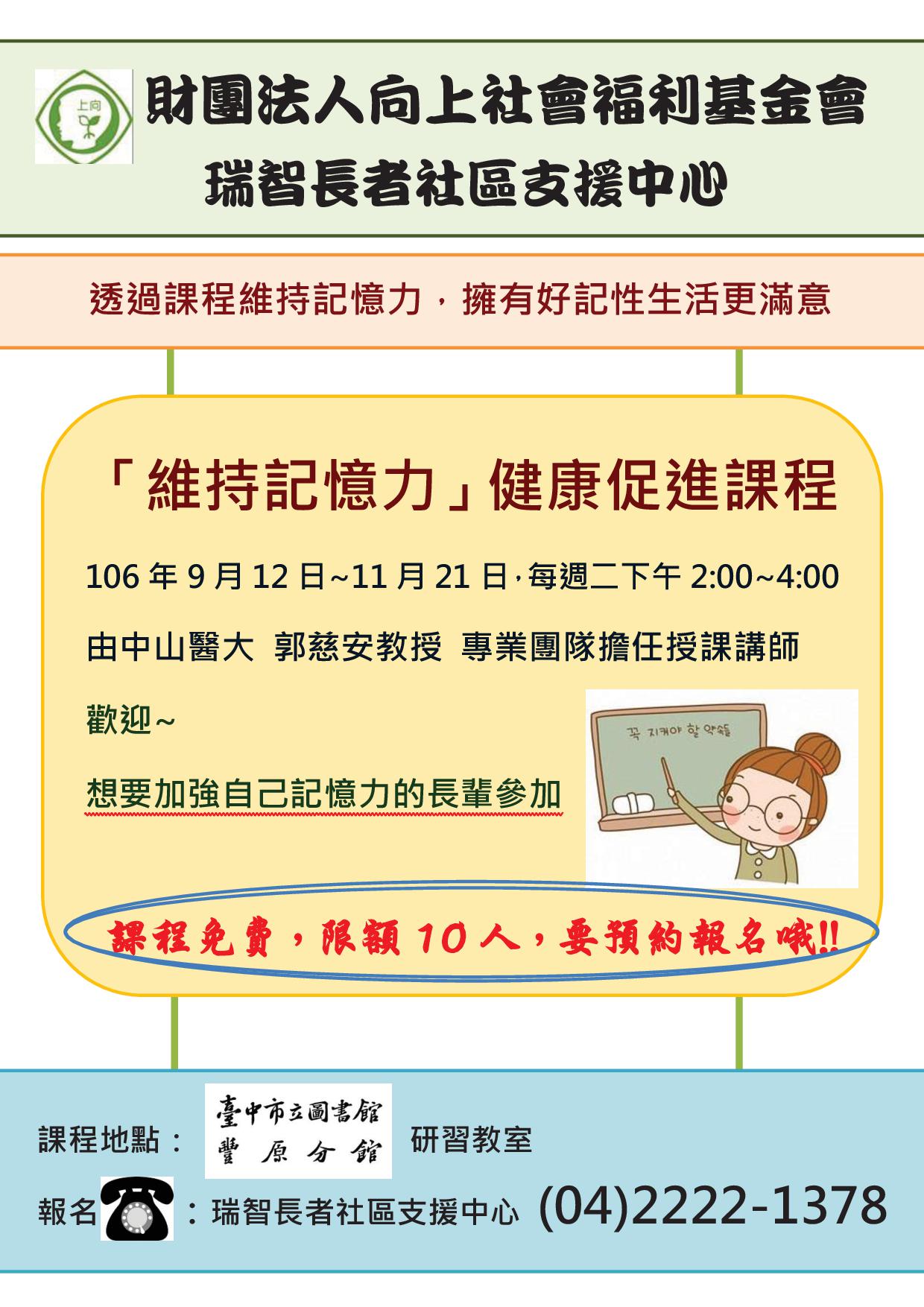 『維持記憶力」健康促進課程 在豐原圖書館開辦啦