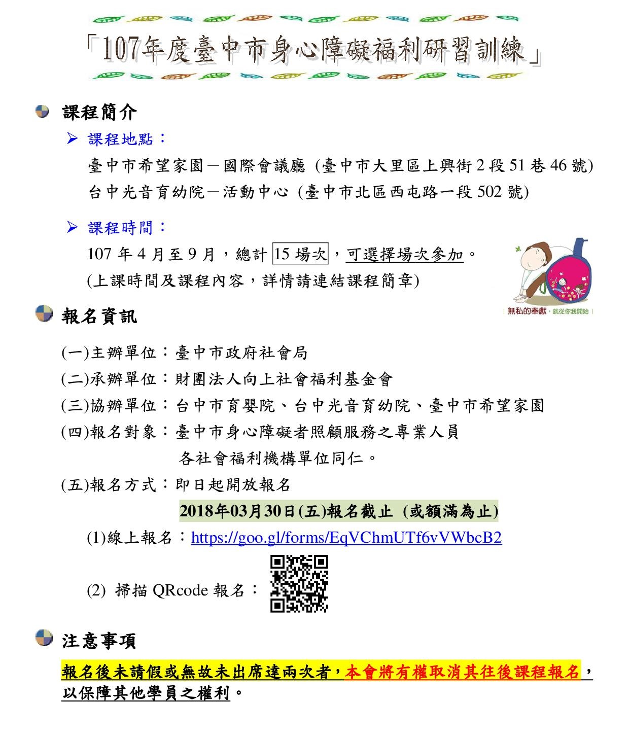 107年度台中市身心障礙福利研習訓練 (本課程可申請社工師時數)