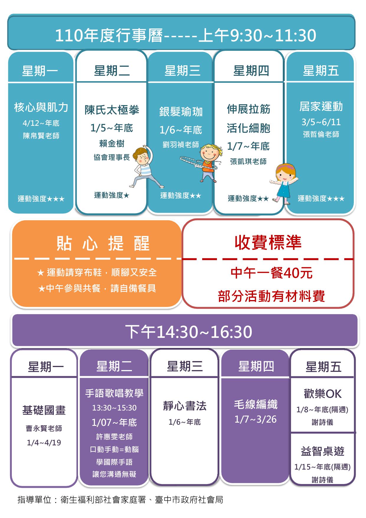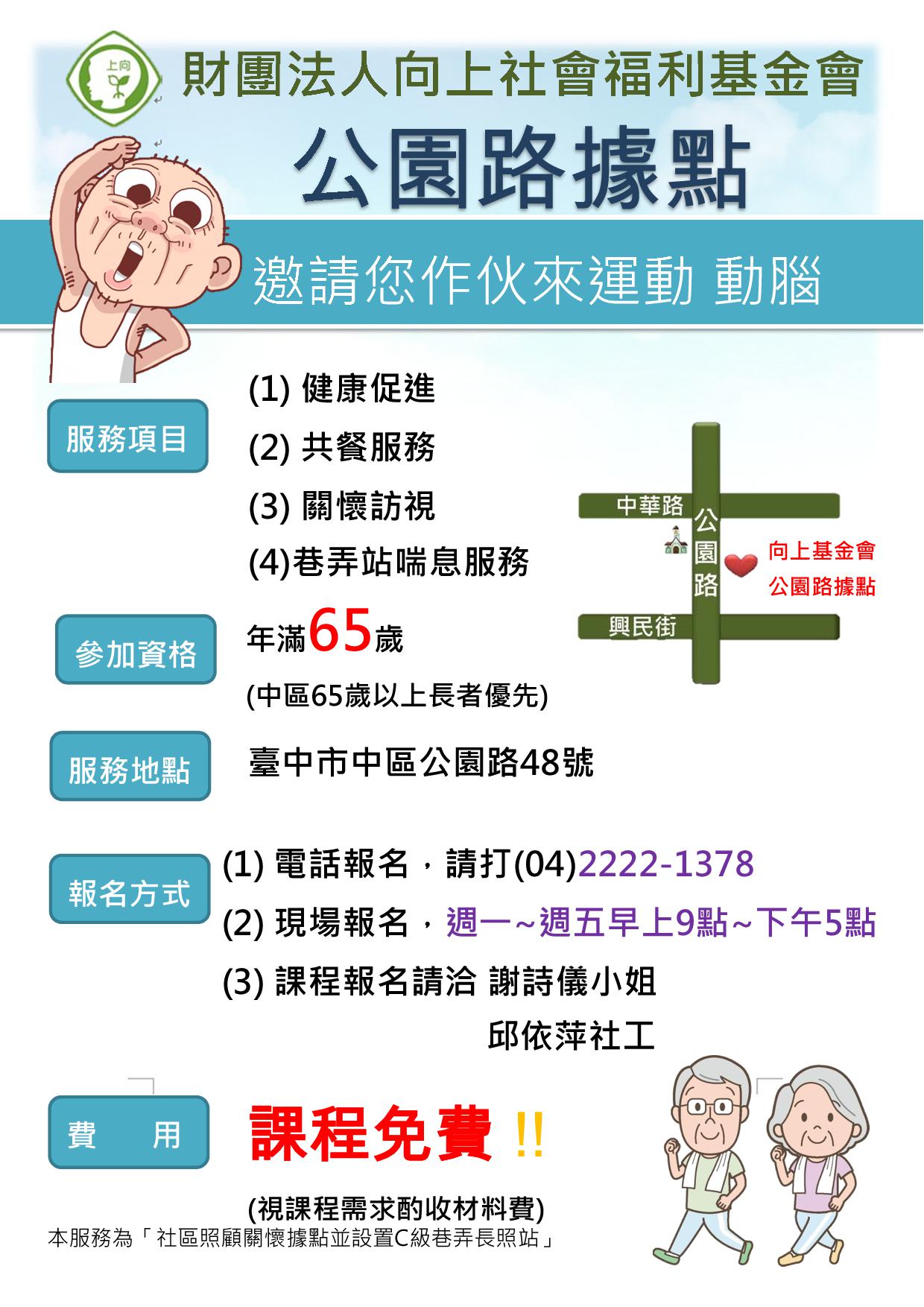 向上共好社區~公園路關懷據點暨C級巷弄站 110年課表,歡迎中區長輩報名!