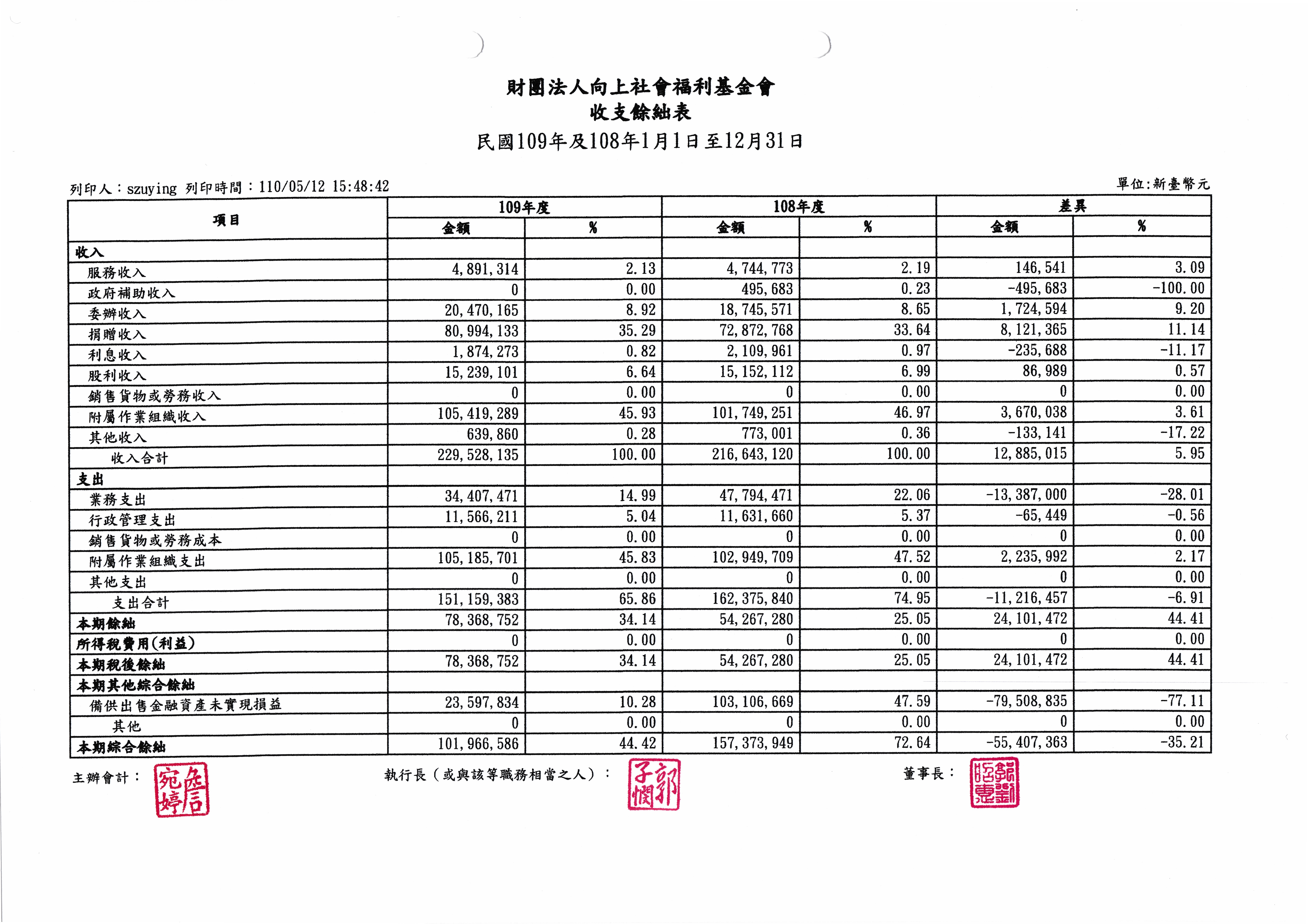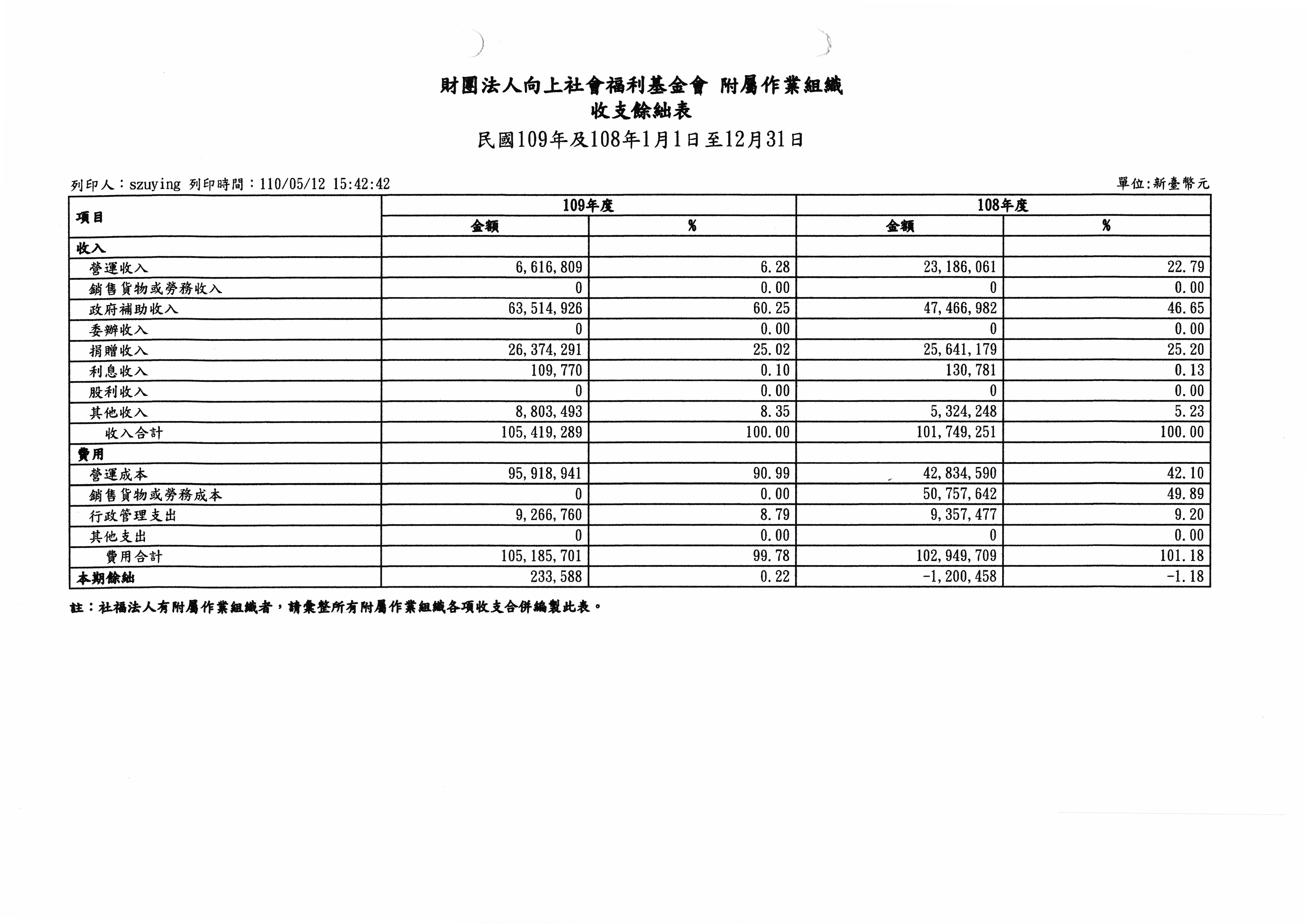 109年決算公告