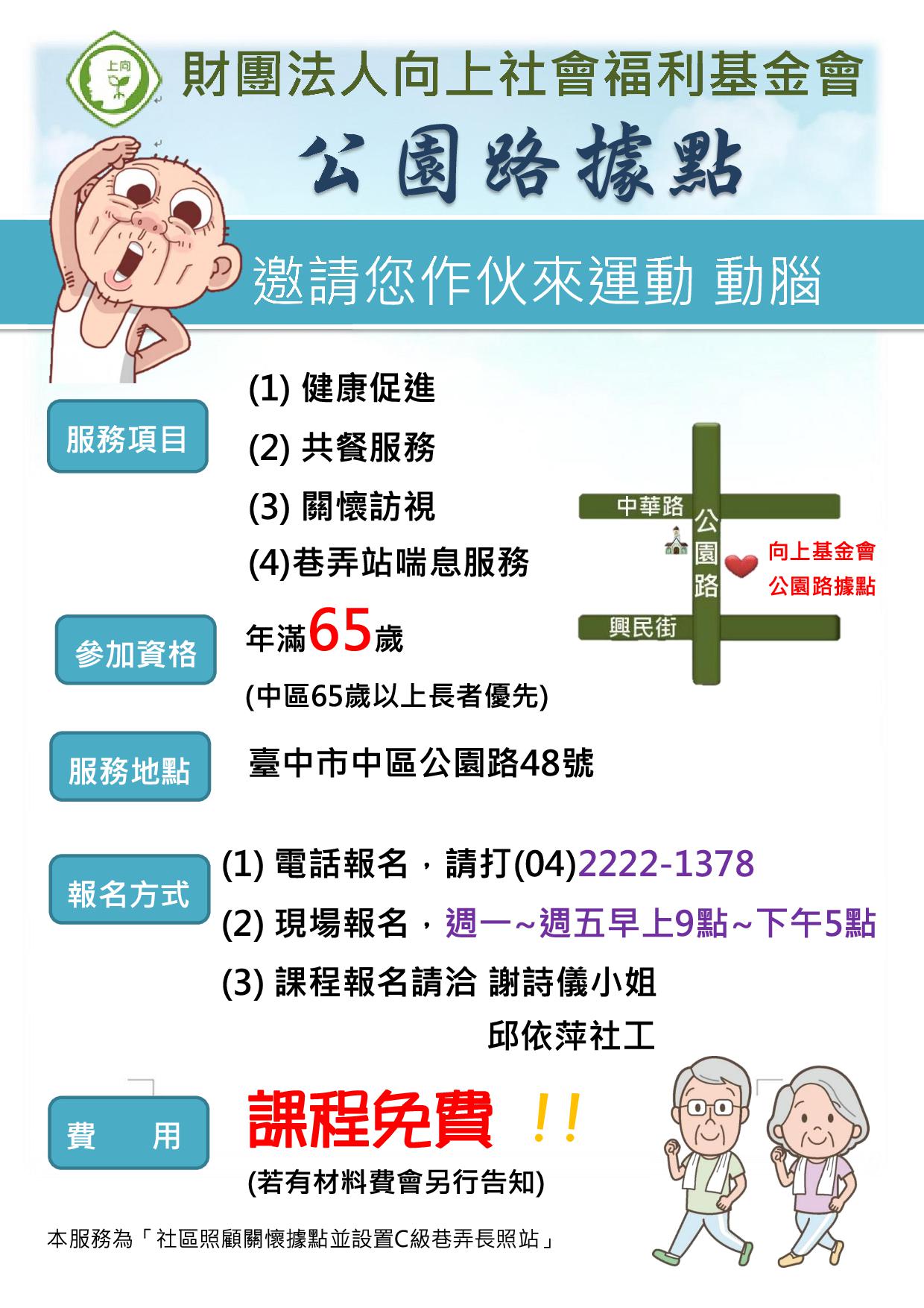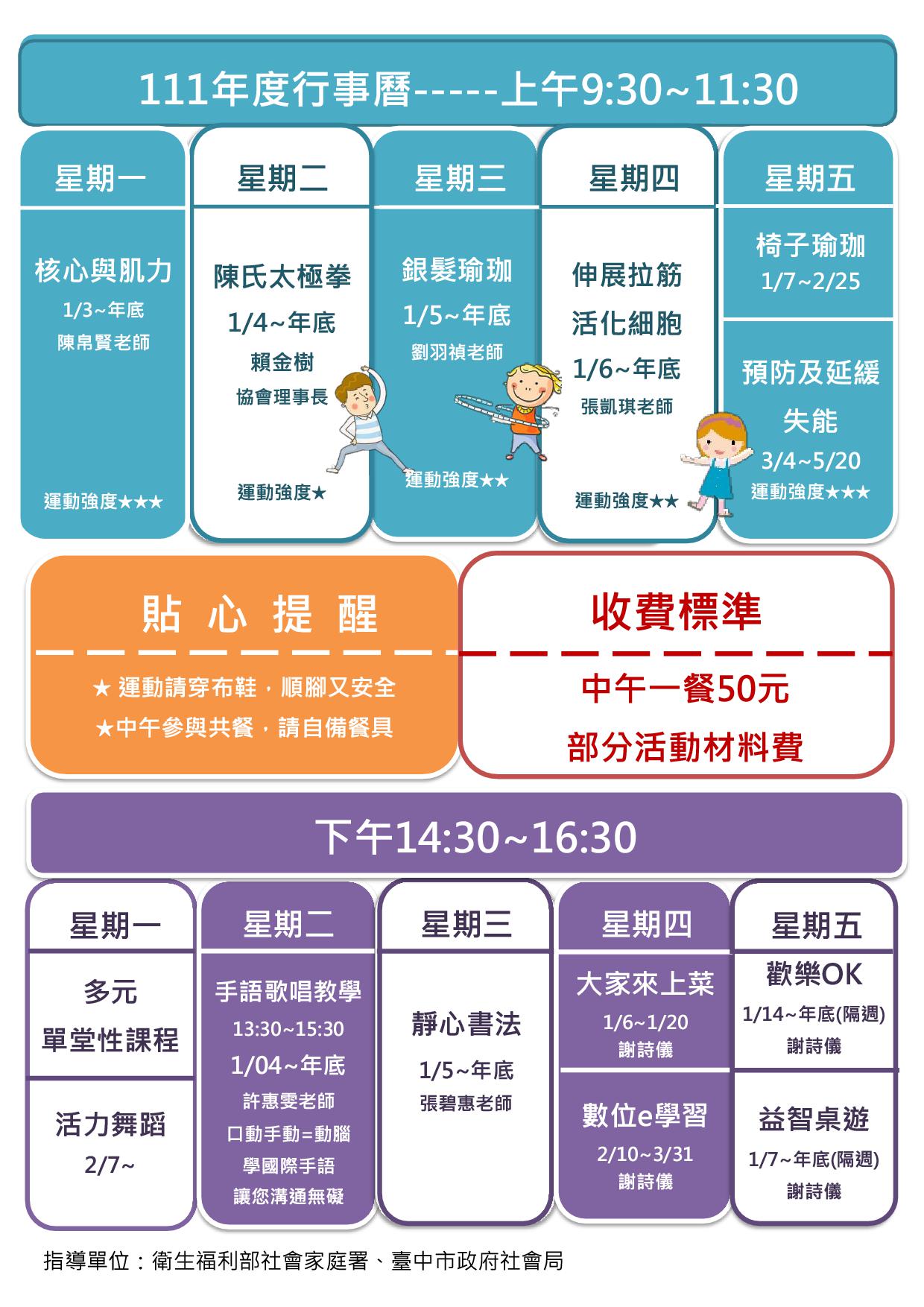 向上共好社區~公園路關懷據點暨C級巷弄站 111年課表,歡迎中區長輩報名!