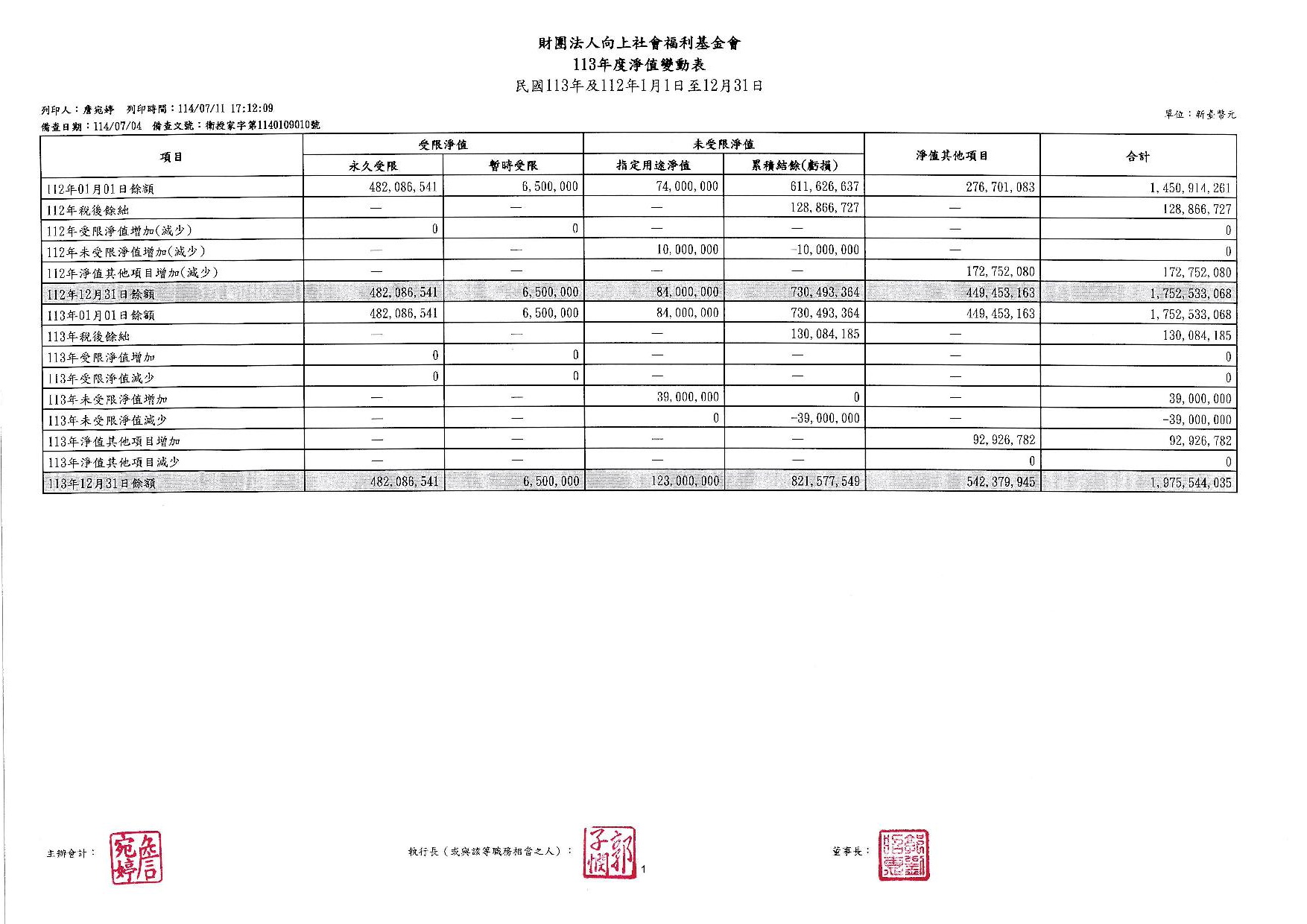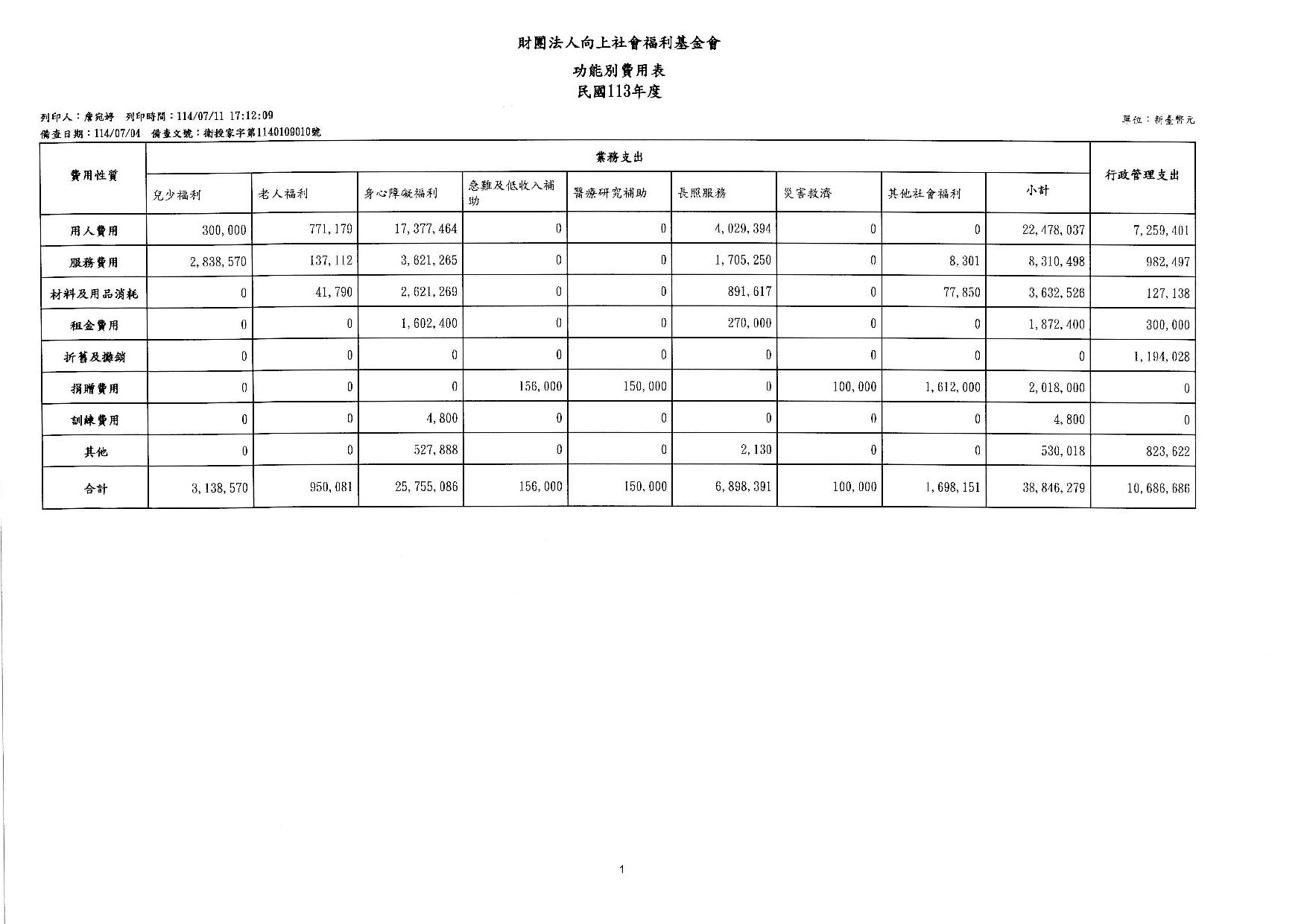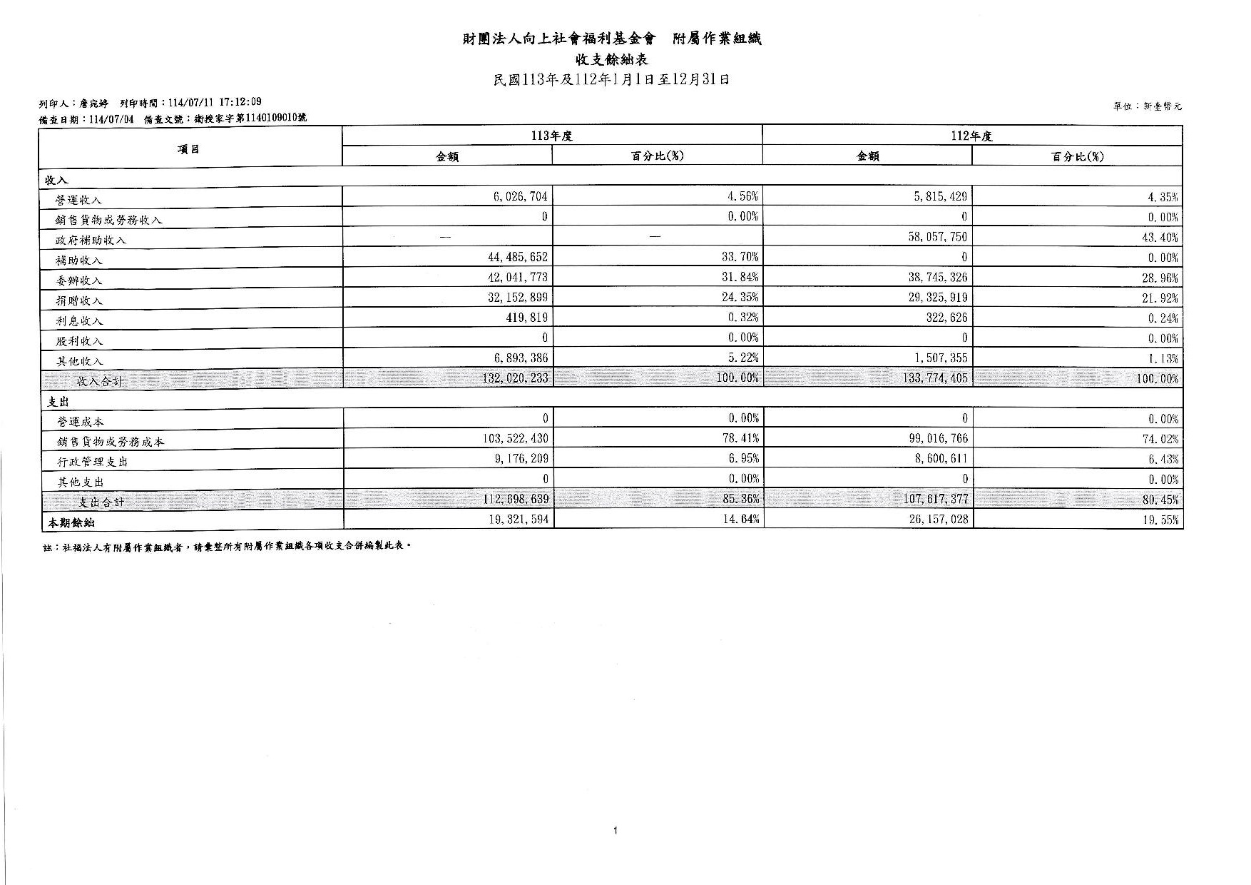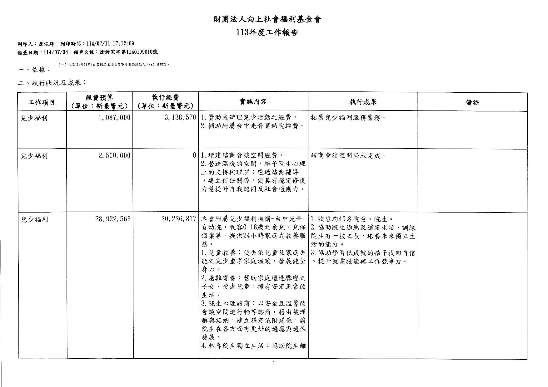 向上基金會113年度工作報告及決算公告
