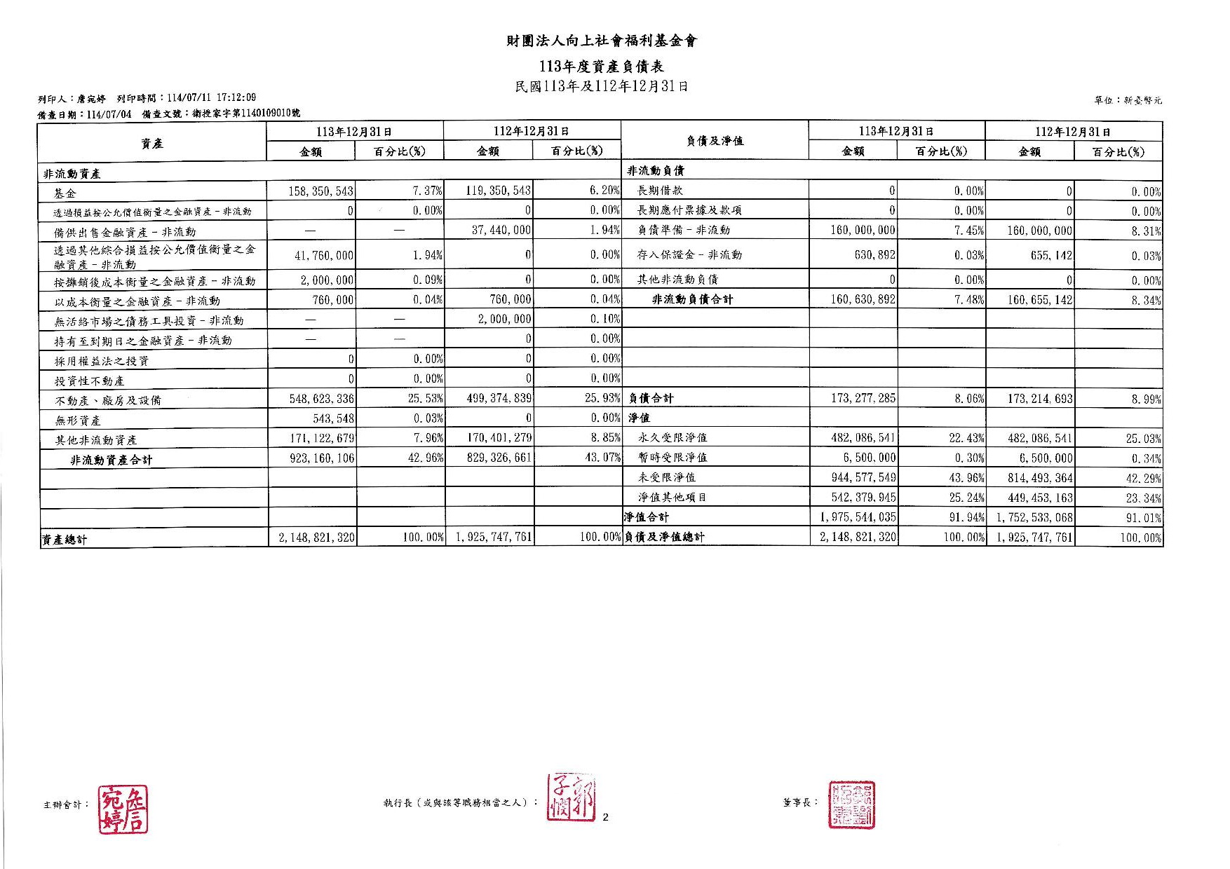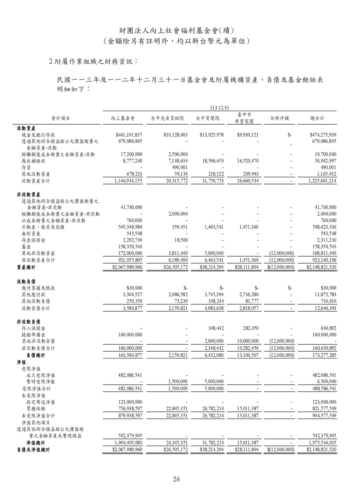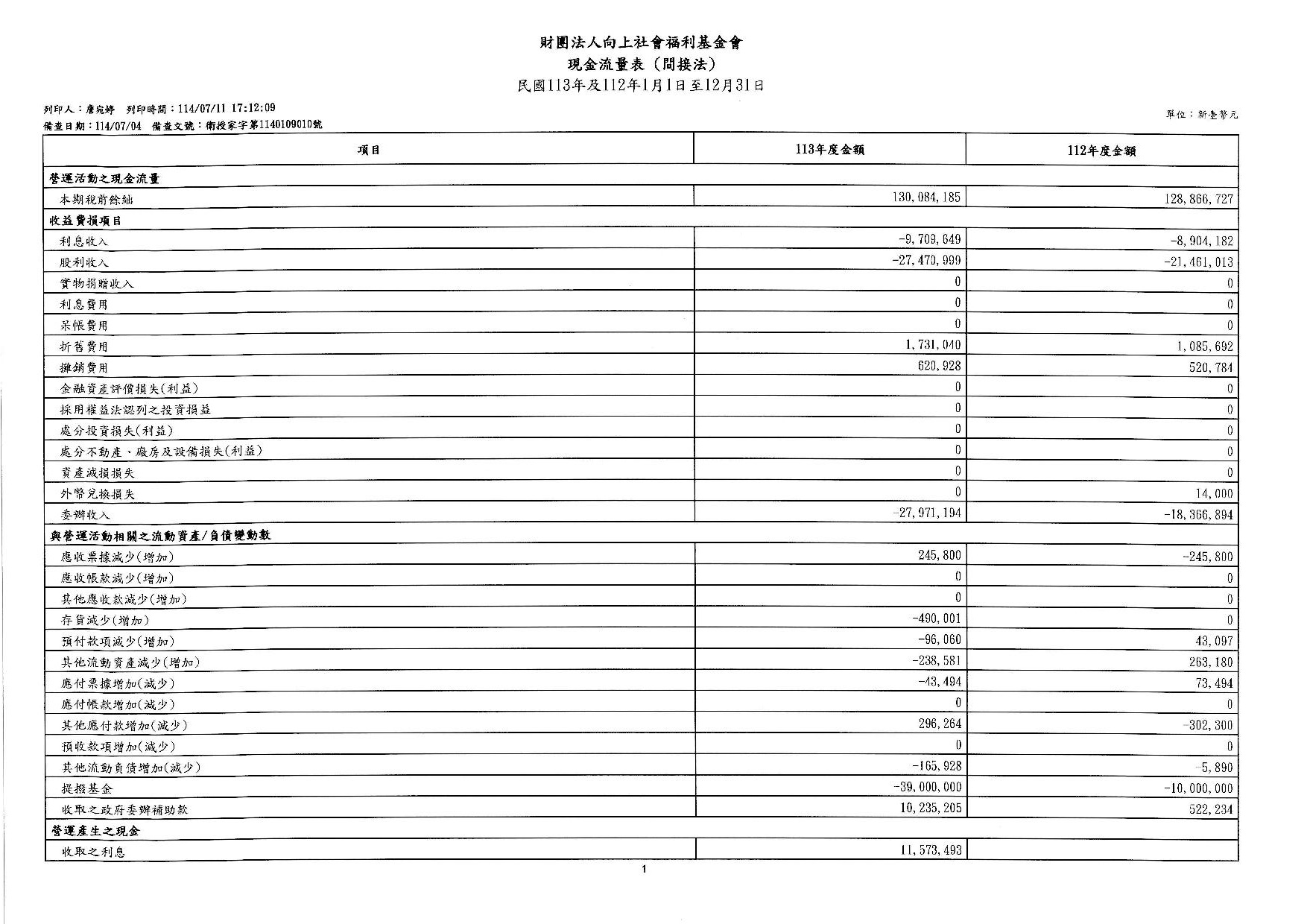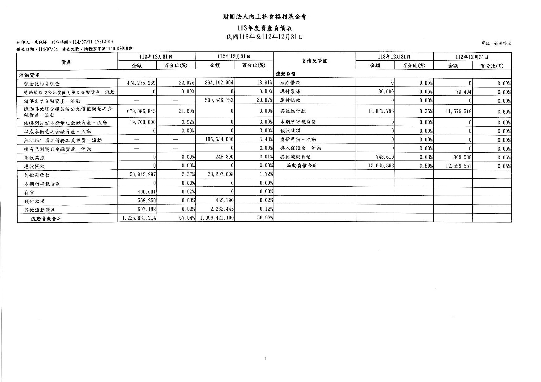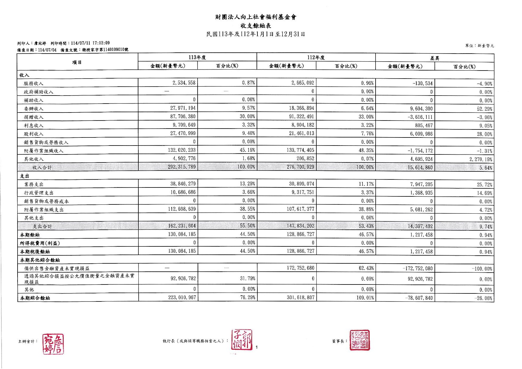 向上基金會113年度工作報告及決算公告
